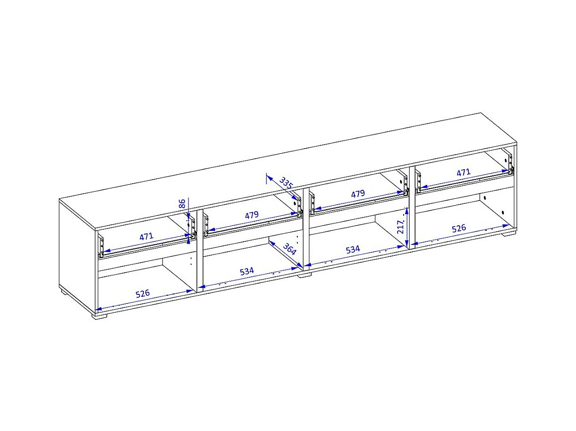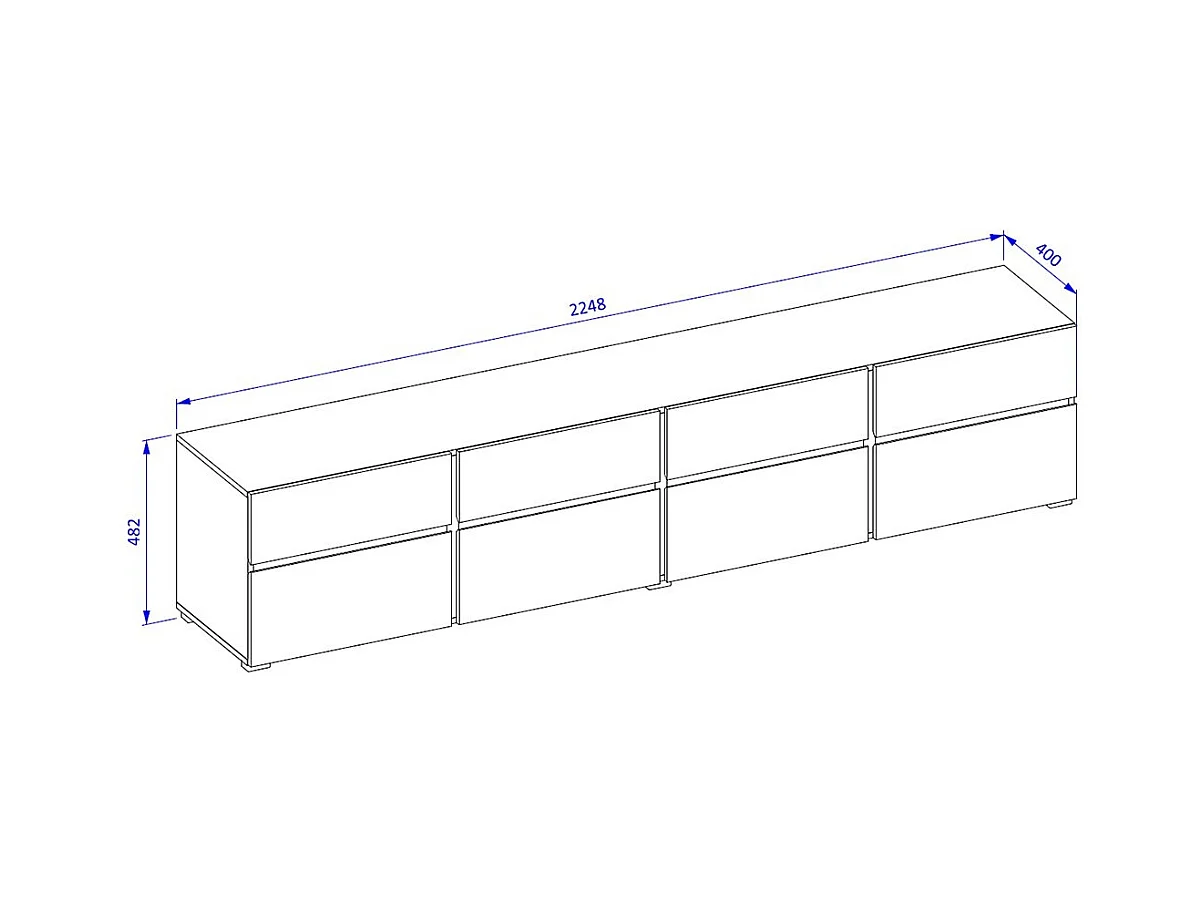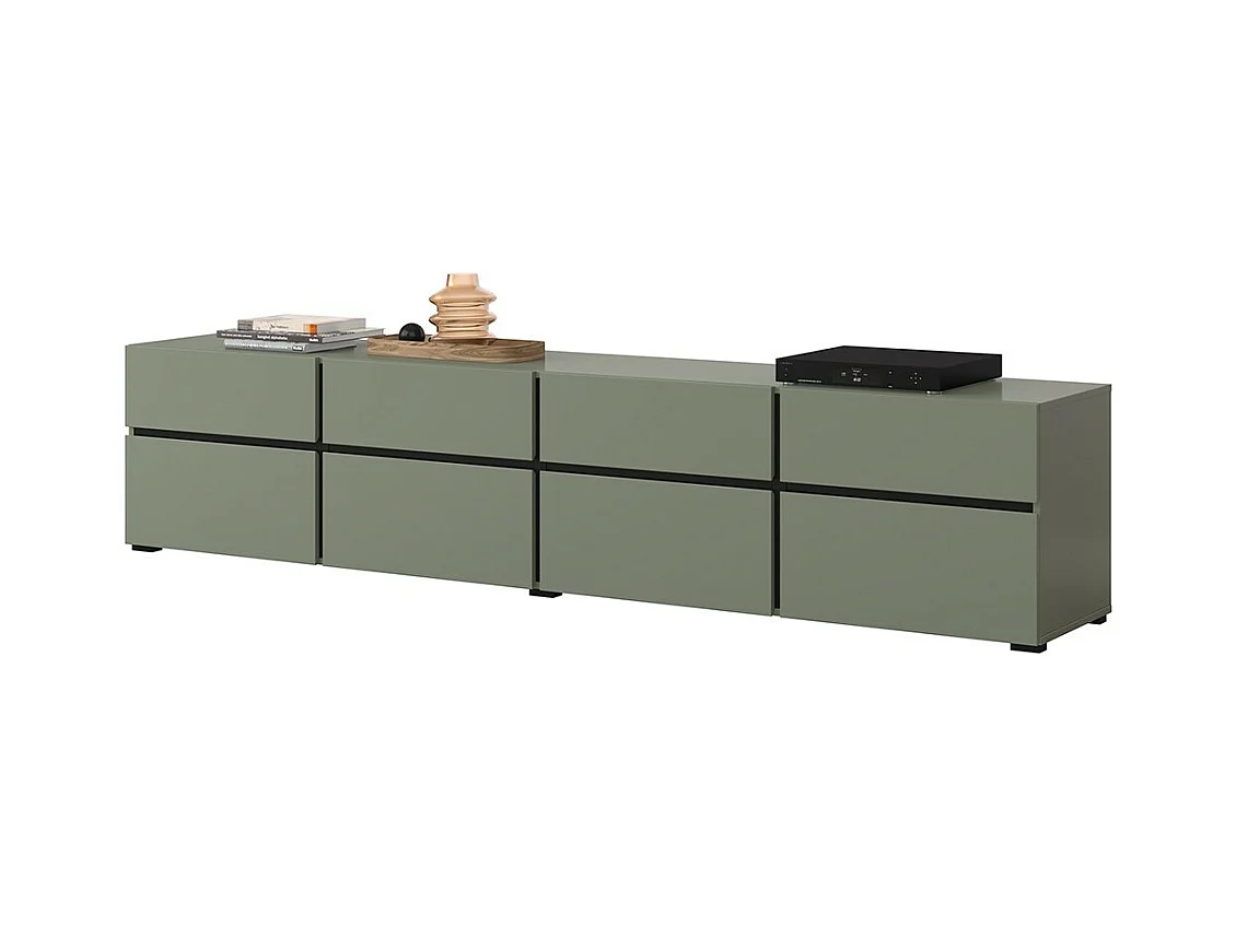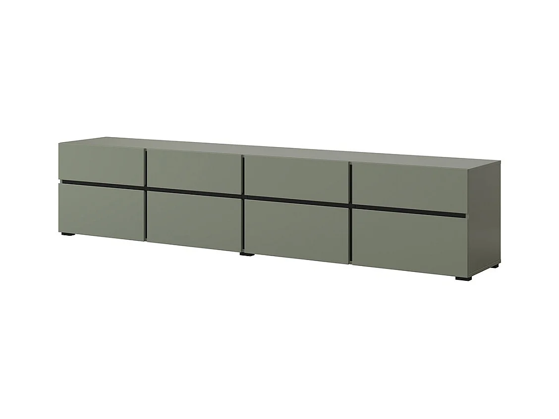 Meuble TV XL coloris vert sauge et noir 225cm collection HAVANA. Meuble design avec 4 portes et 4 tiroirs.
