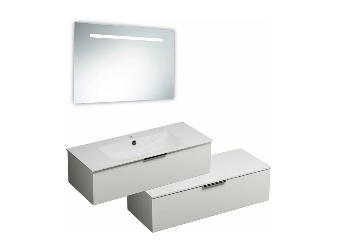 Meuble vasque 90 cm BURGBAD Olena en décalé blanc brillant + miroir