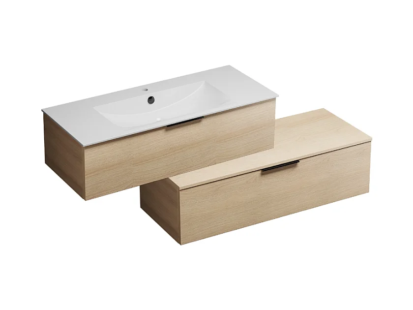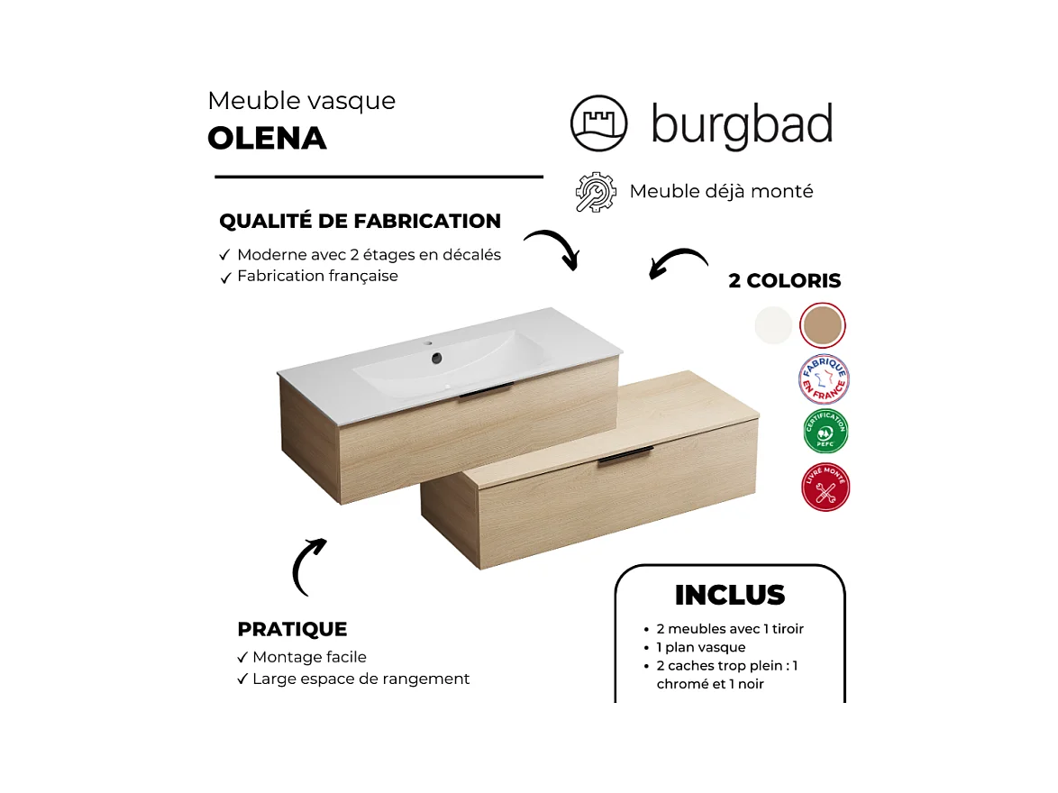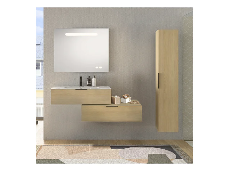 Meuble vasque 90 cm BURGBAD Olena en décalé chêne