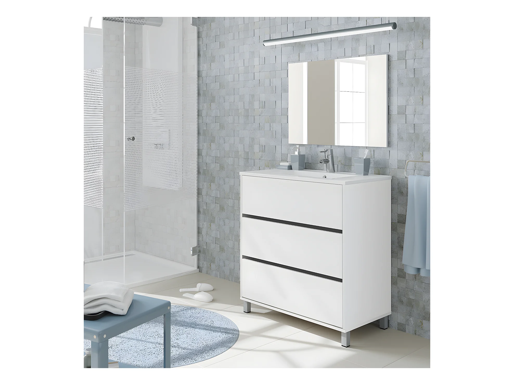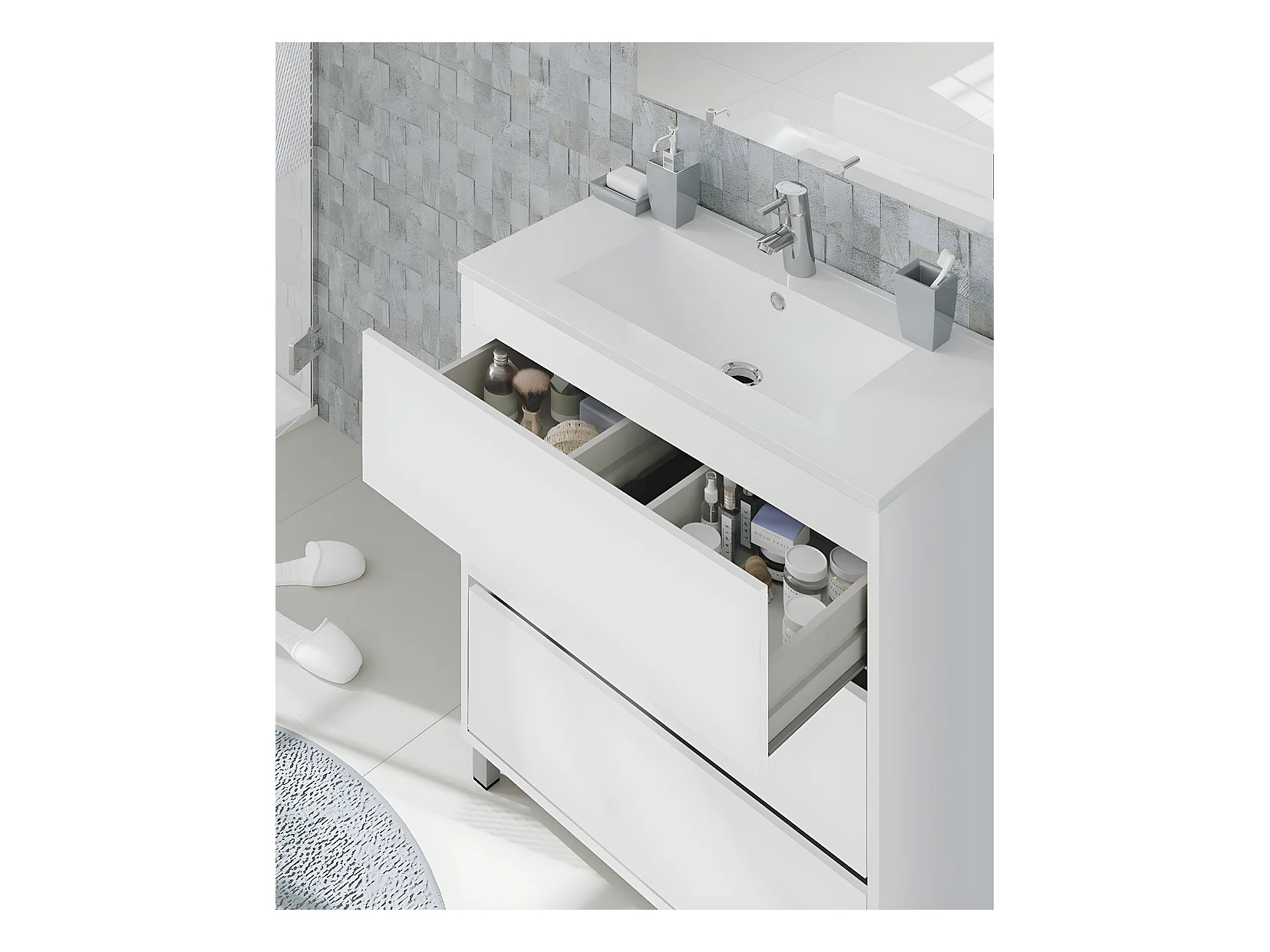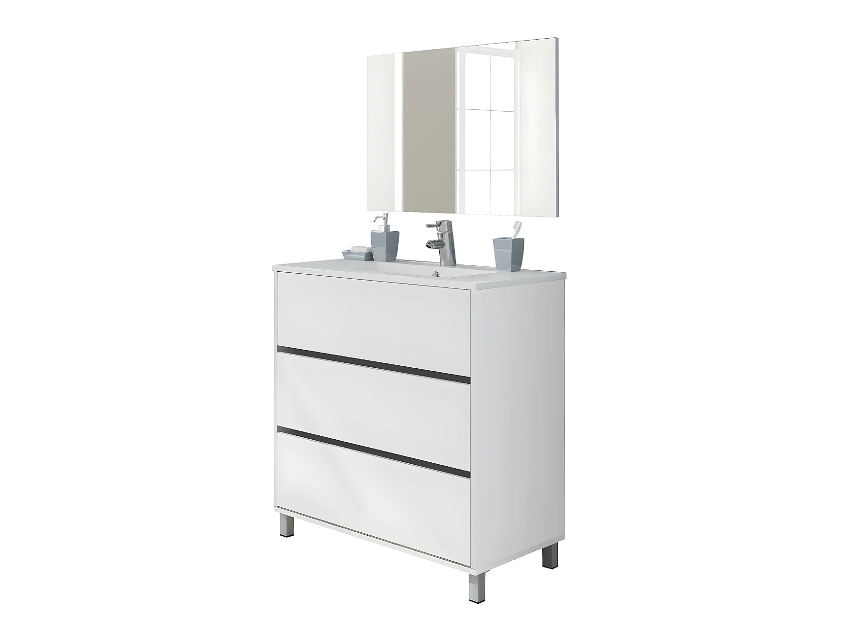 Meuble Vasque avec miroir coloris blanc brillant - Hauteur 90 x Longueur 81.5 x Profondeur 46.5 cm