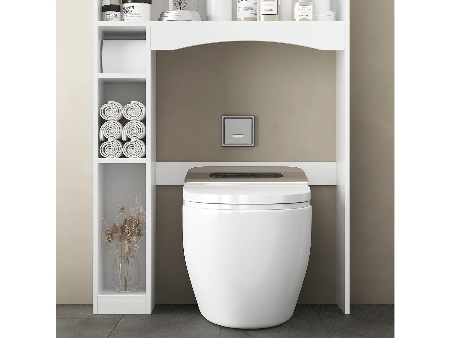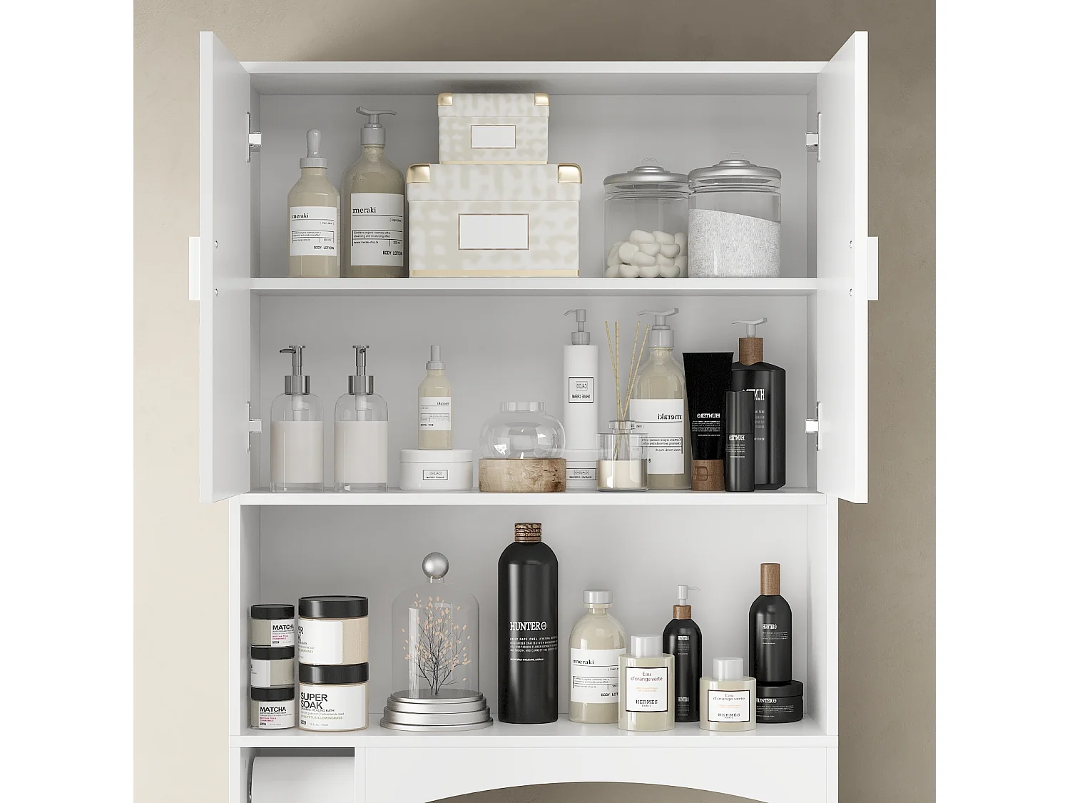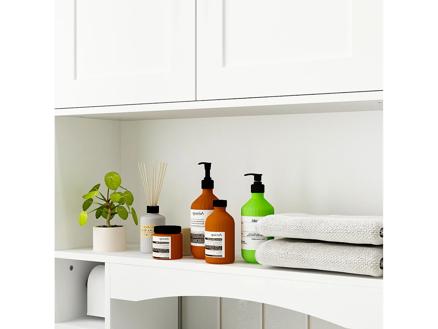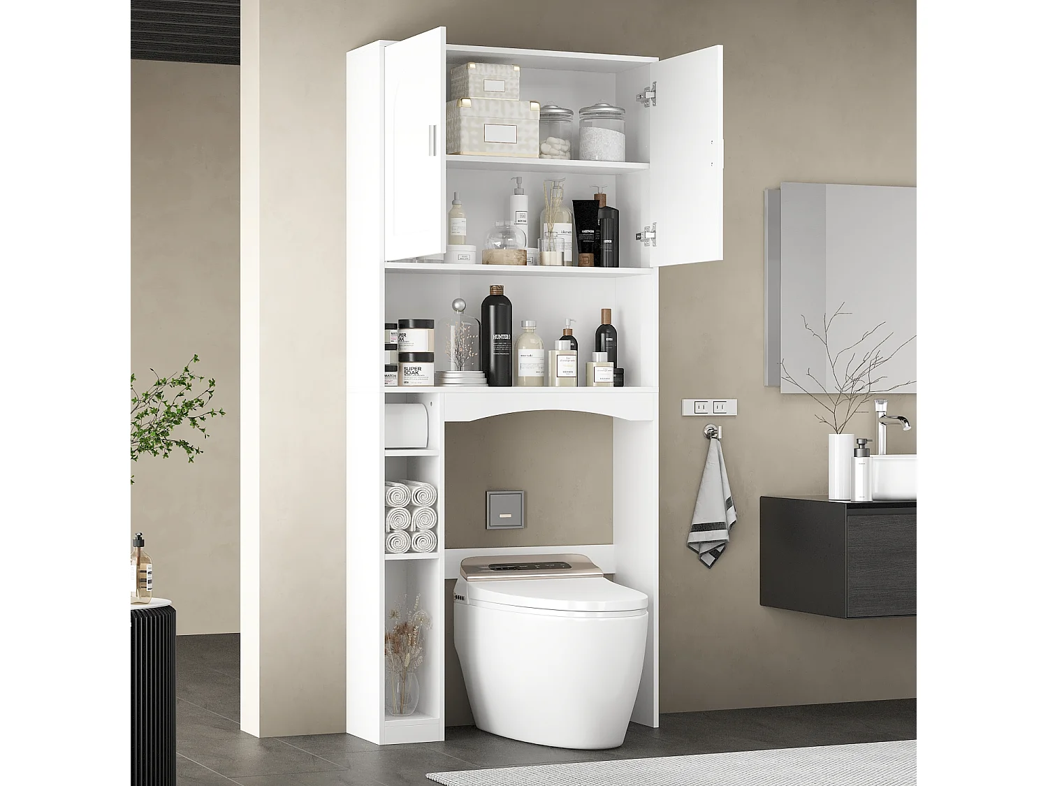 Meuble WC Dessus de Toilettes avec 2 Portes et 4 Compartiments Ouverts pour Salle de Bain Blanc Moderne 80 x 25 x 180 CM