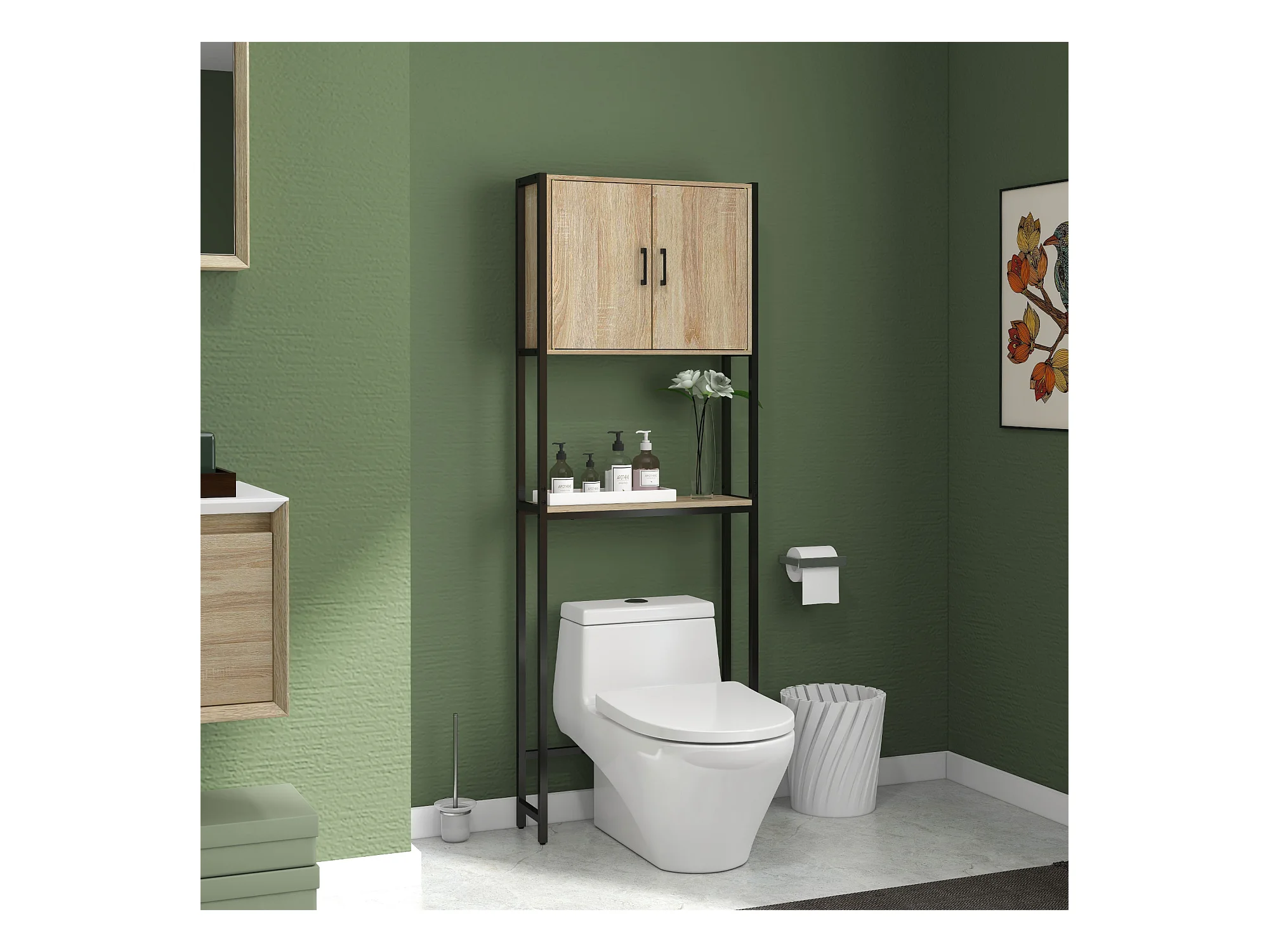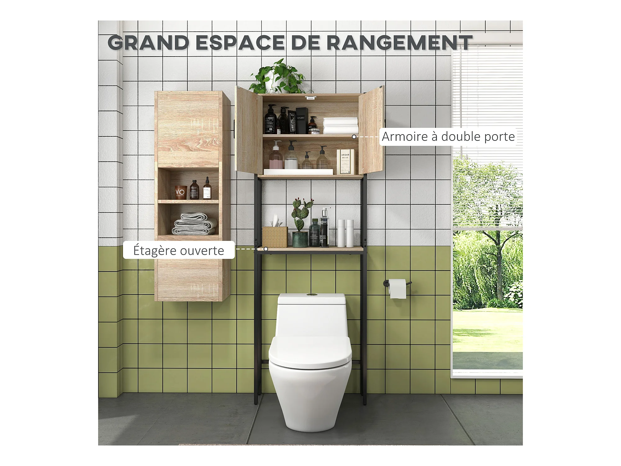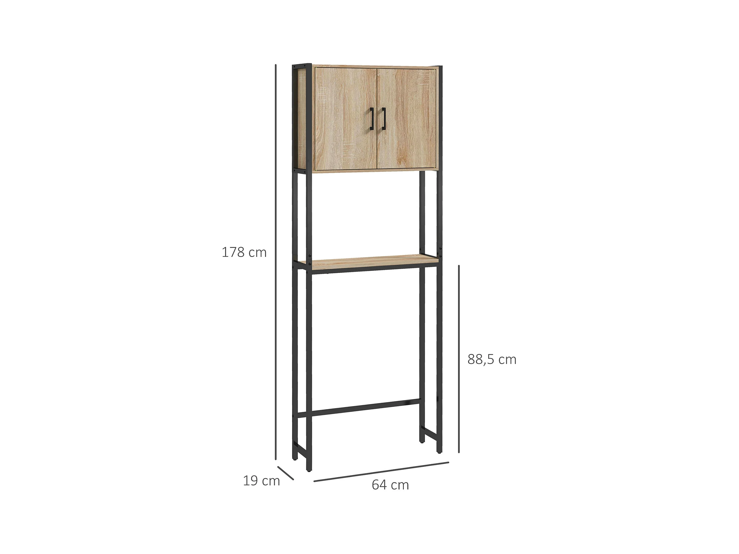 Meuble dessus de Toilettes WC 2 Portes 1 Etagère et 1 Tablette H 172.5 cm - Naturel