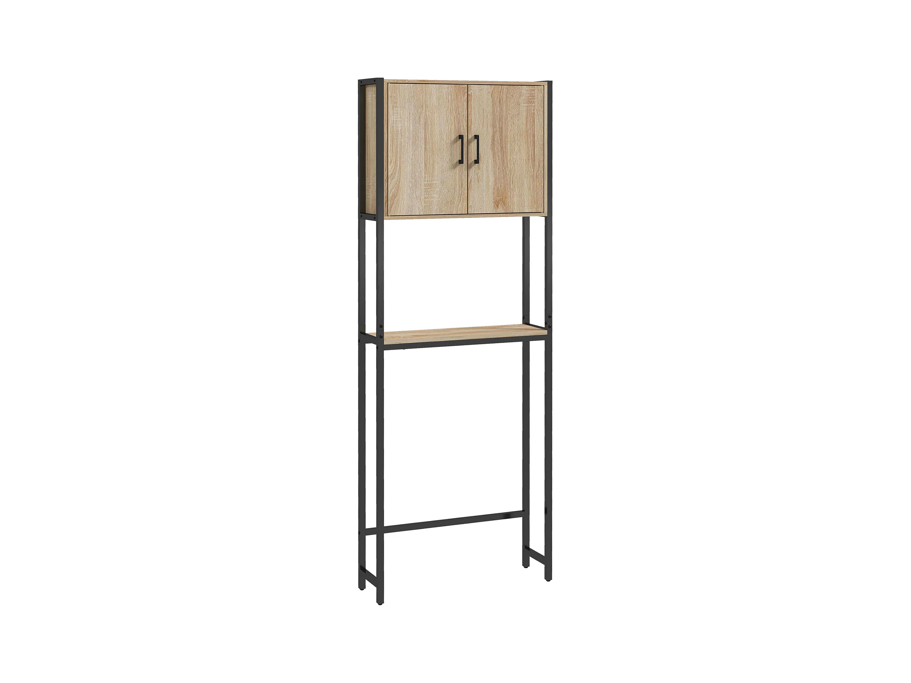 Meuble WC meuble dessus toilettes style industriel 2 portes 2 étagères acier noir aspect chêne clair