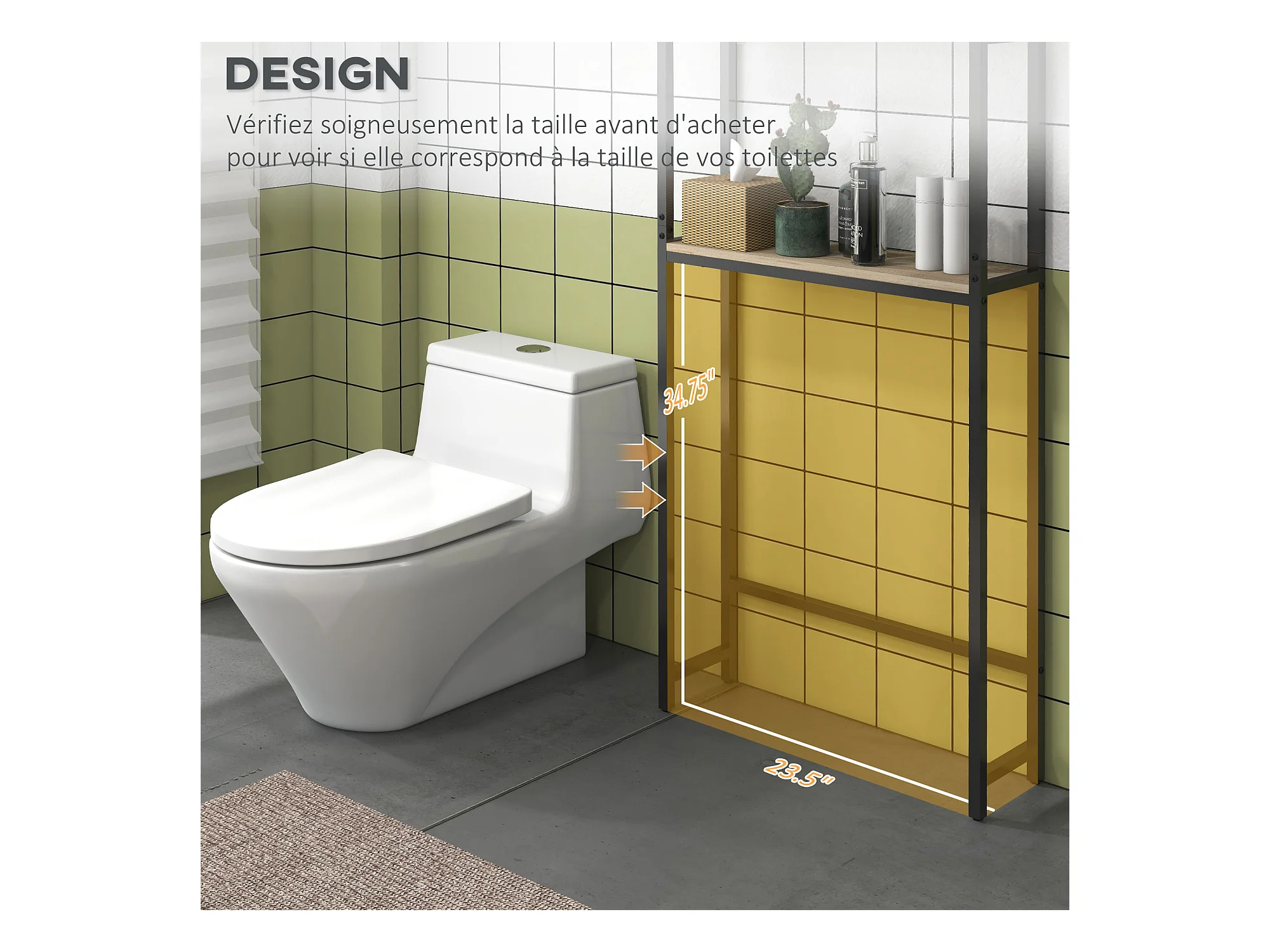 Meuble dessus de Toilettes WC avec 2 Étagères en Bambou H 161 cm
