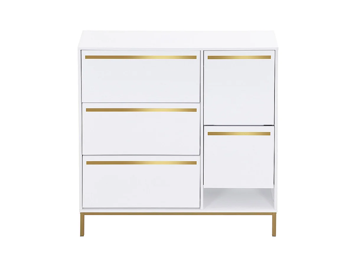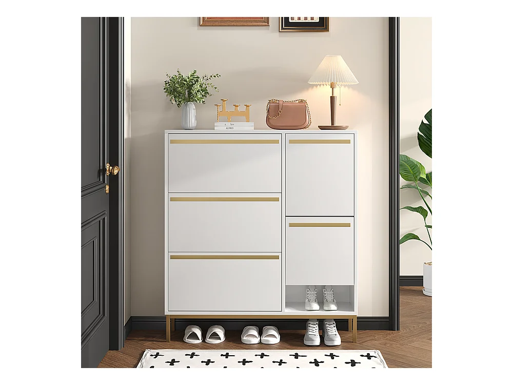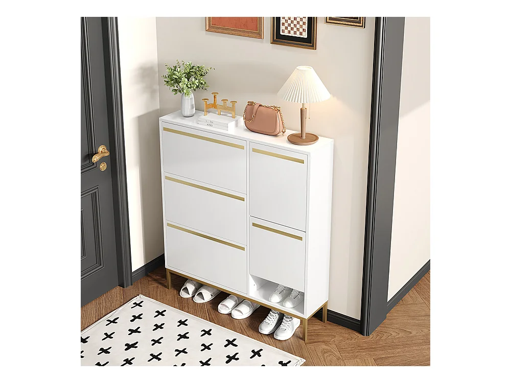 Meuble à chaussures 2 portes blanc étagères réglables poignées dorées