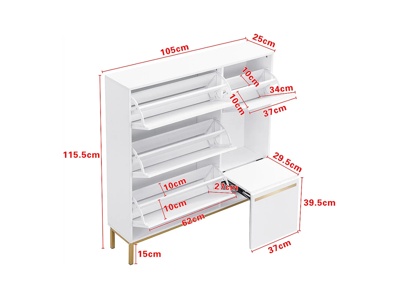 Meuble à chaussures blanc 3 tiroirs rabattables organiseur entrée banc rabattable