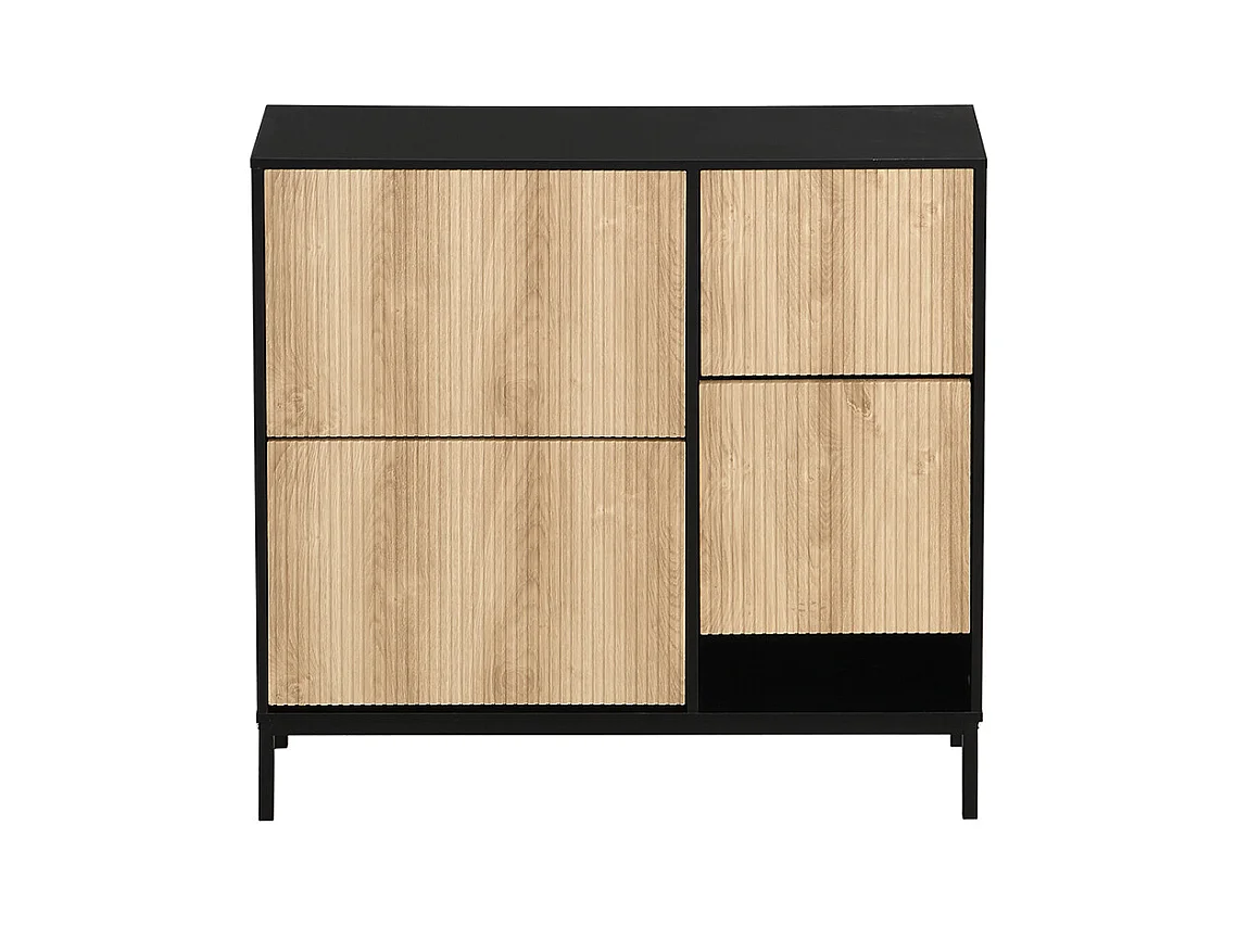 Meuble à chaussures/rangement - H109cm x L90cm x P27cm chêne doré portes impression lattes piètement noir - Narvik