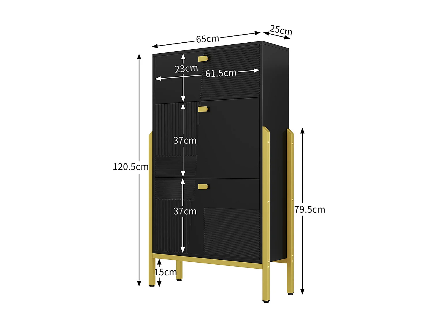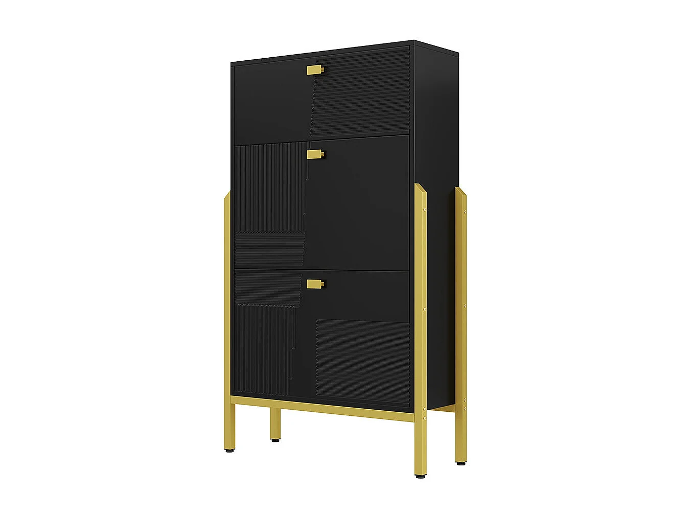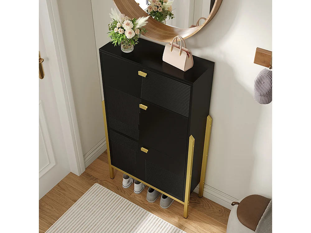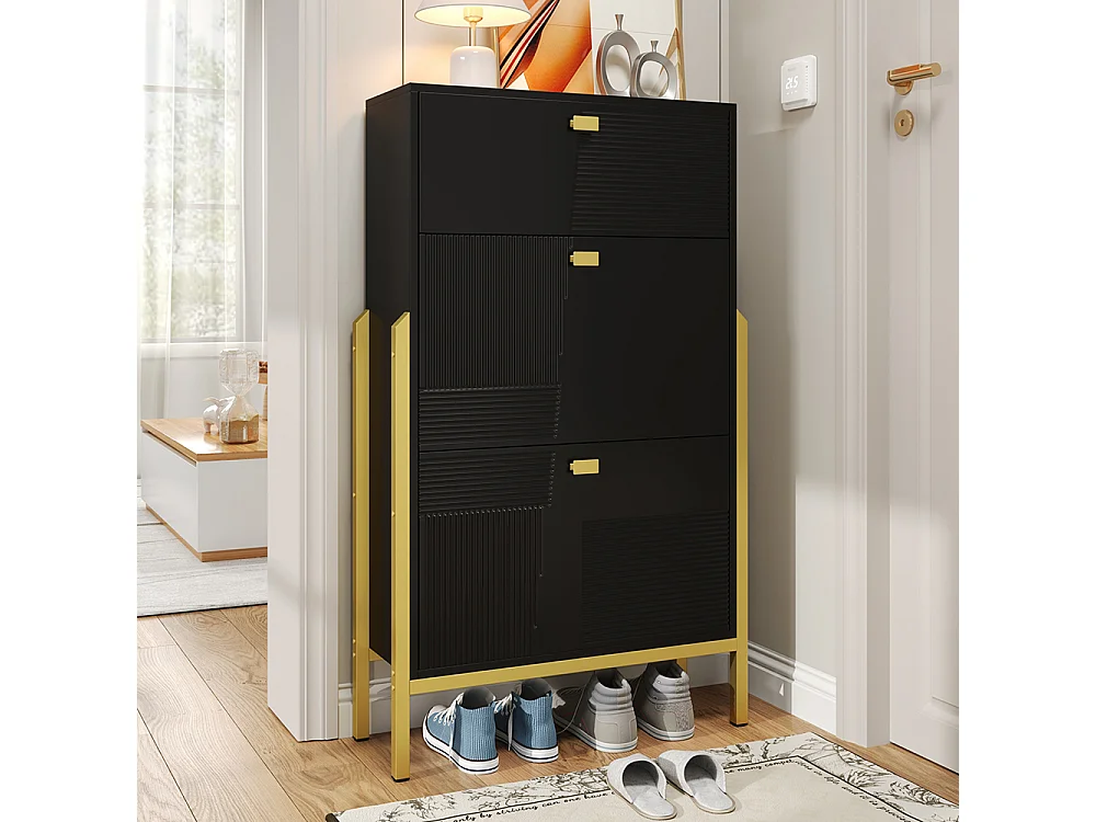 Meubles à chaussures avec tiroirs double étagère à chaussures avec poignées et pieds Dorés Noir