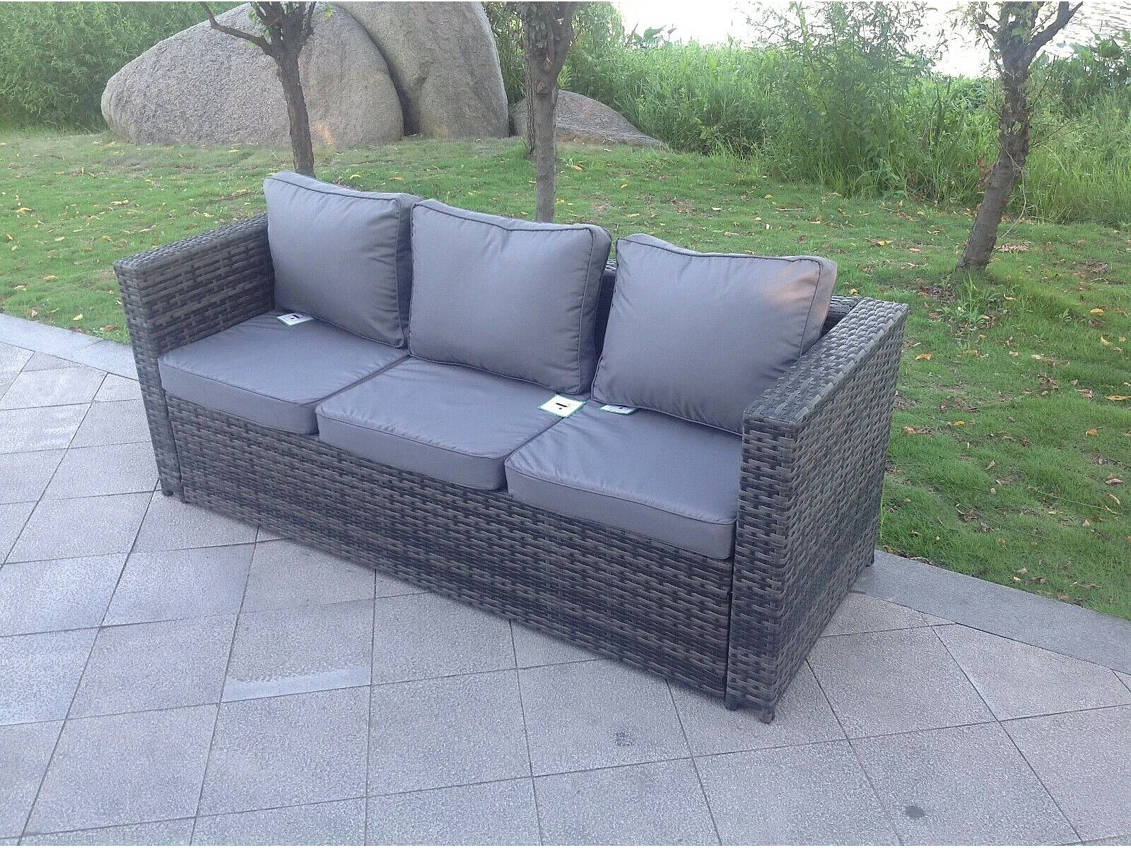 Meubles de jardin en rotin ave 3 Places canapé Table basse Tabourets Mélange gris foncé