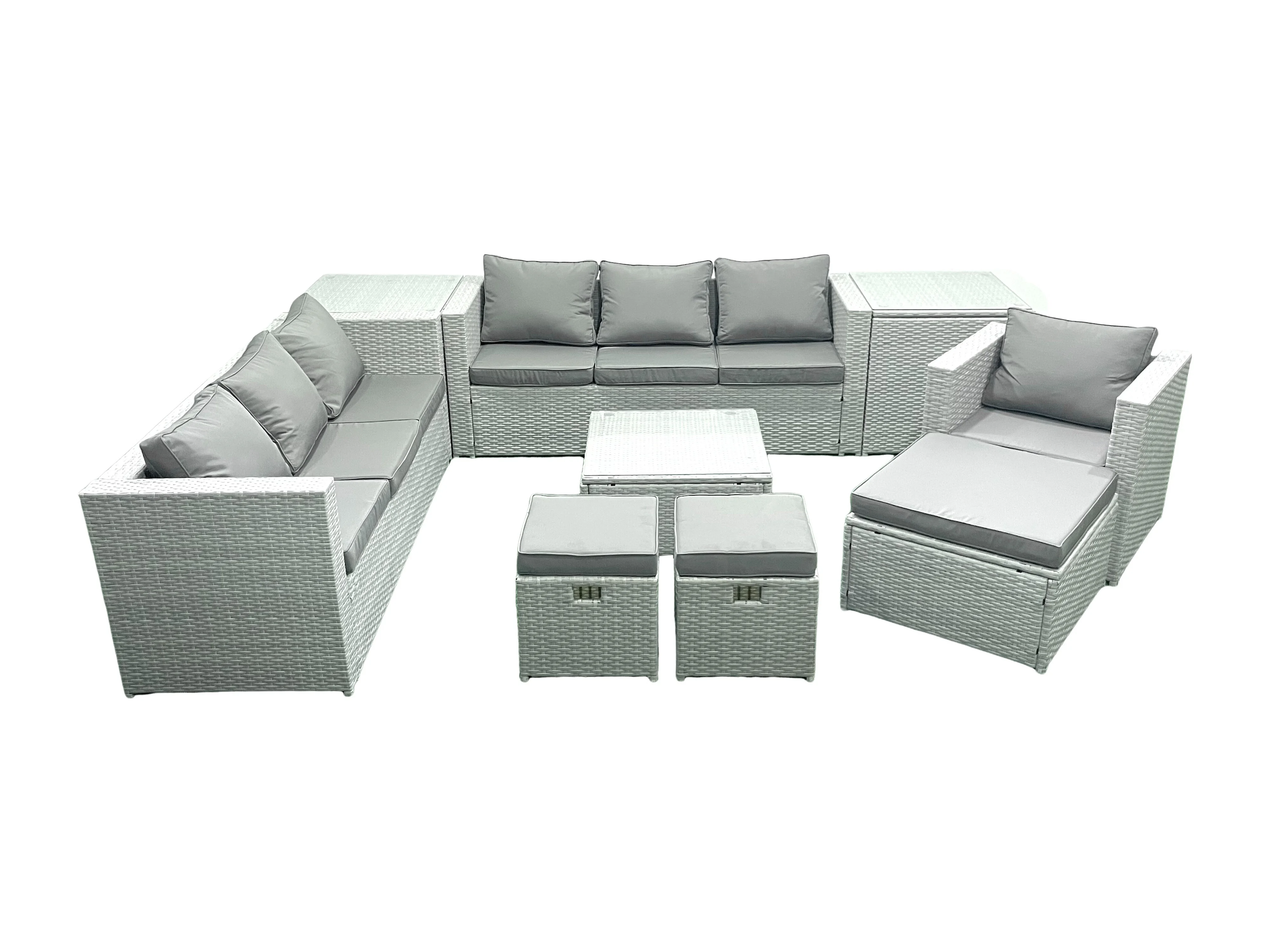 Meubles d'extérieur en rotin avec Fauteuil Table basse carrée 3 Tabourets 2 Tables d'appoint Gris clair mixte