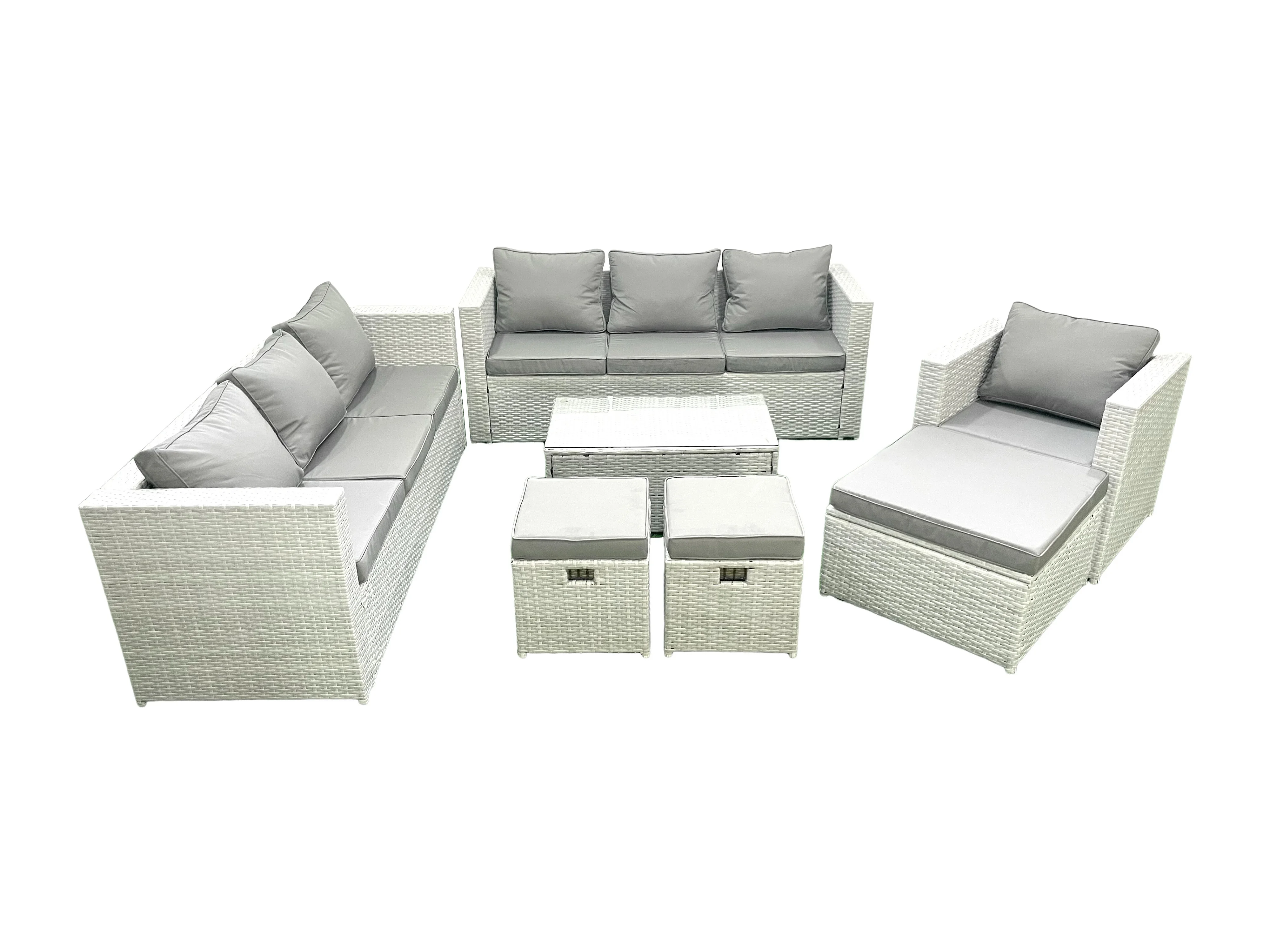 Meubles d'extérieur en rotin avec Fauteuil Table basse oblongue 3 Tabourets Gris clair mixte