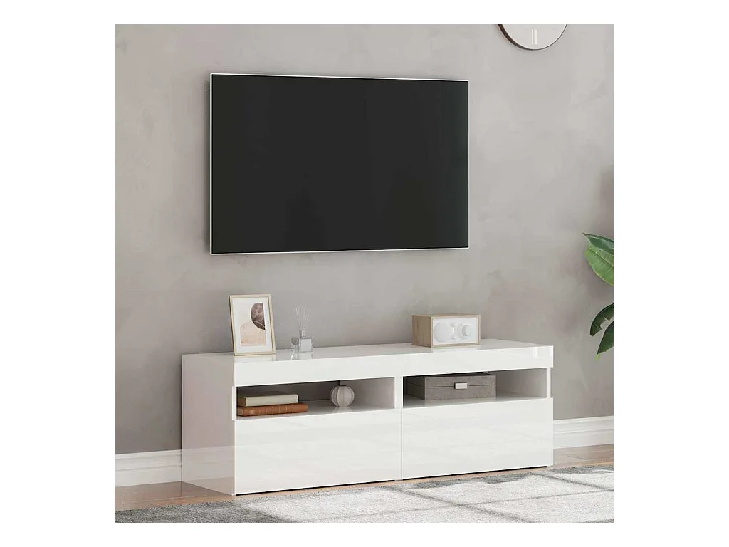 Meuble TV avec lumières LED blanc brillant 120x35x40 cm