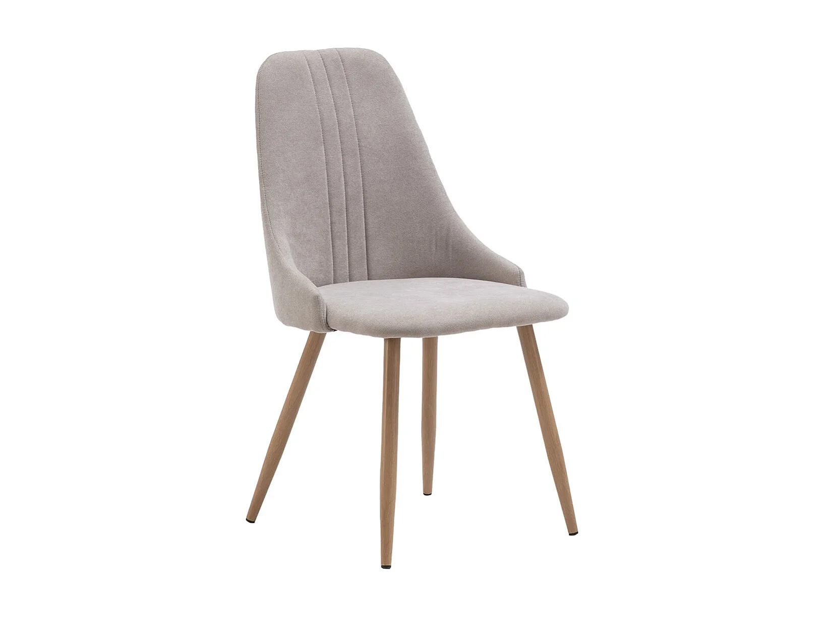 MICAT - Lot de 4 Chaises Tissu Beige 3 Lignes Surpiquées Pieds Métal Effet Bois