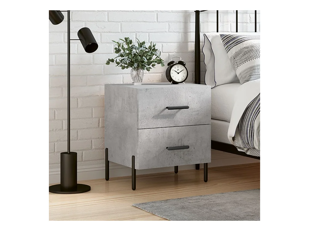 Mikael Table de chevet gris béton 40x35x47,5 cm bois d’ingénierie
