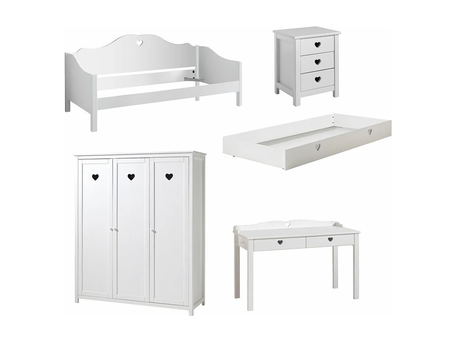 MILADY - Chambre 90x200cm Lit Banquette + Armoire 3P + Bureau