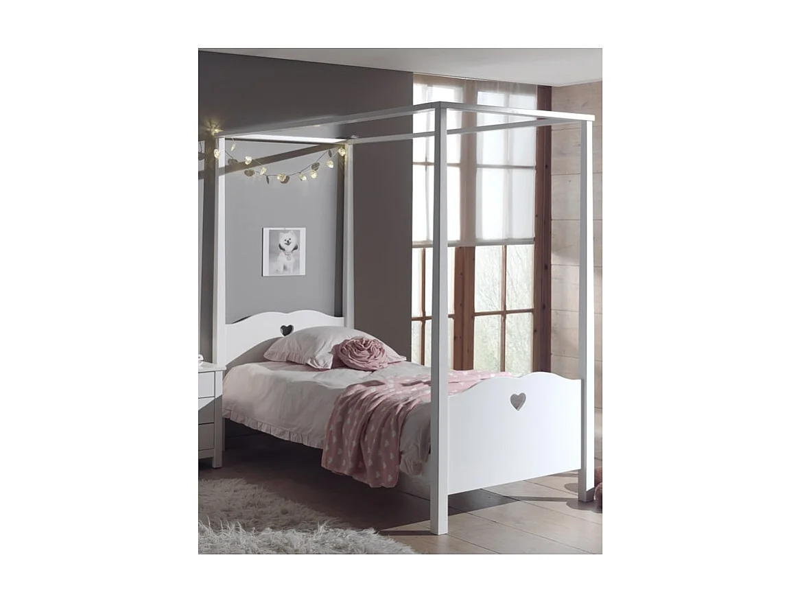 MILADY - Lit à Baldaquin 90x200cm Blanc Motifs Coeurs
