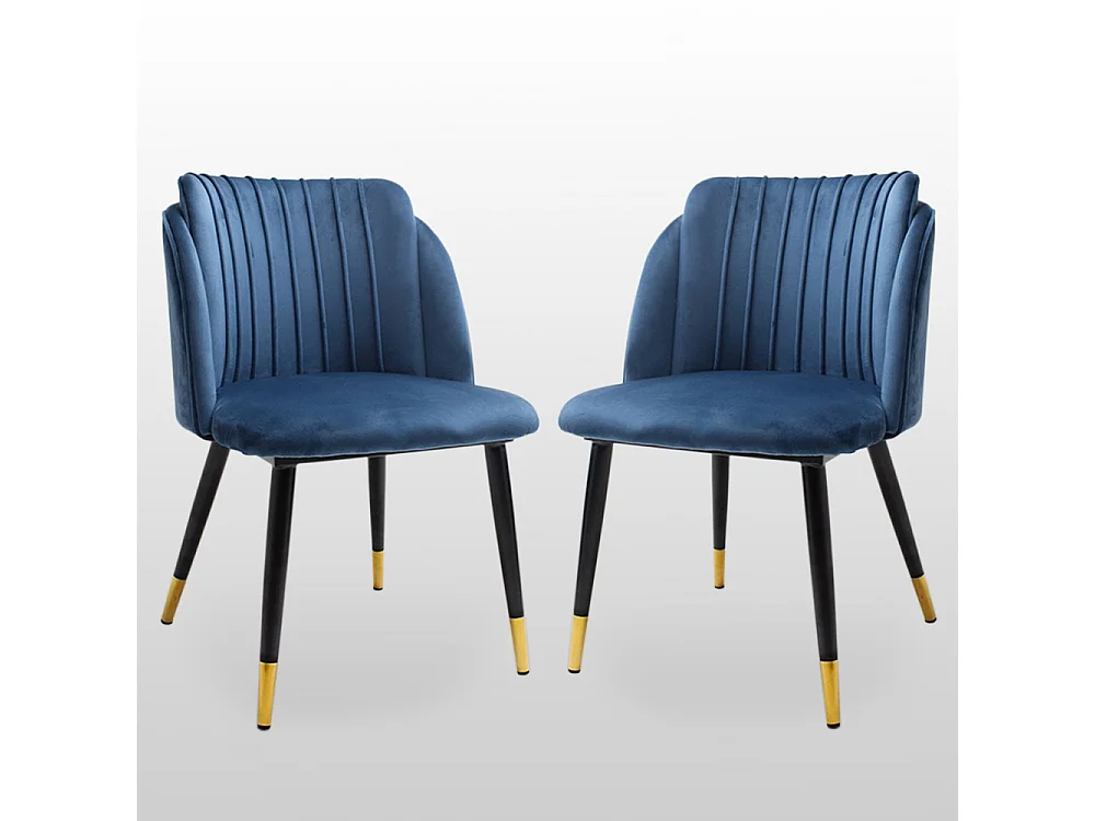 MILANO - Lot de 2 Chaises de Salle à Manger en Velours - Style Vintage - Bleu