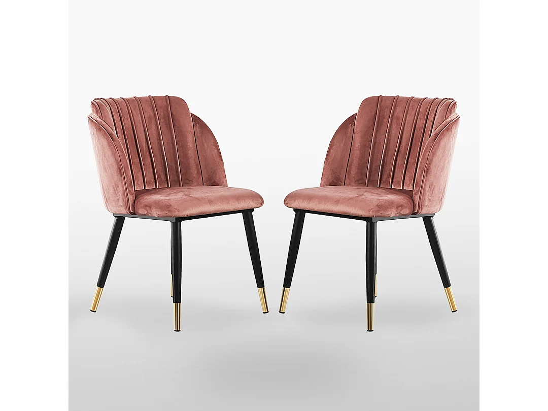 MILANO - Lot de 2 Chaises de Salle à Manger en Velours - Style Vintage - Rose