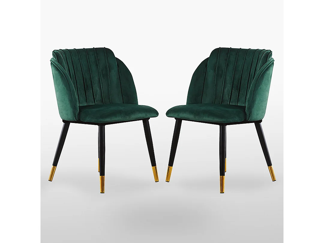 MILANO - Lot de 2 Chaises de Salle à Manger en Velours - Style Vintage - Vert