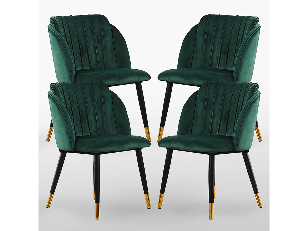 MILANO - Lot de 4 Chaises de Salle à Manger en Velours - Style Vintage - Vert
