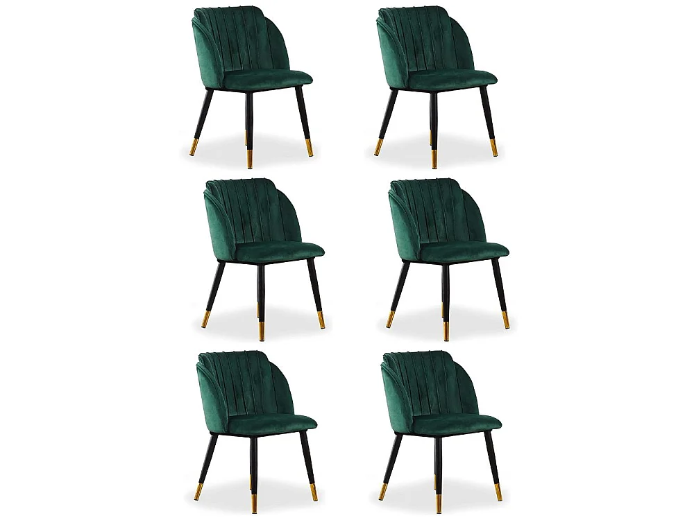 MILANO - Lot de 6 Chaises de Salle à Manger en Velours - Style Vintage - Vert