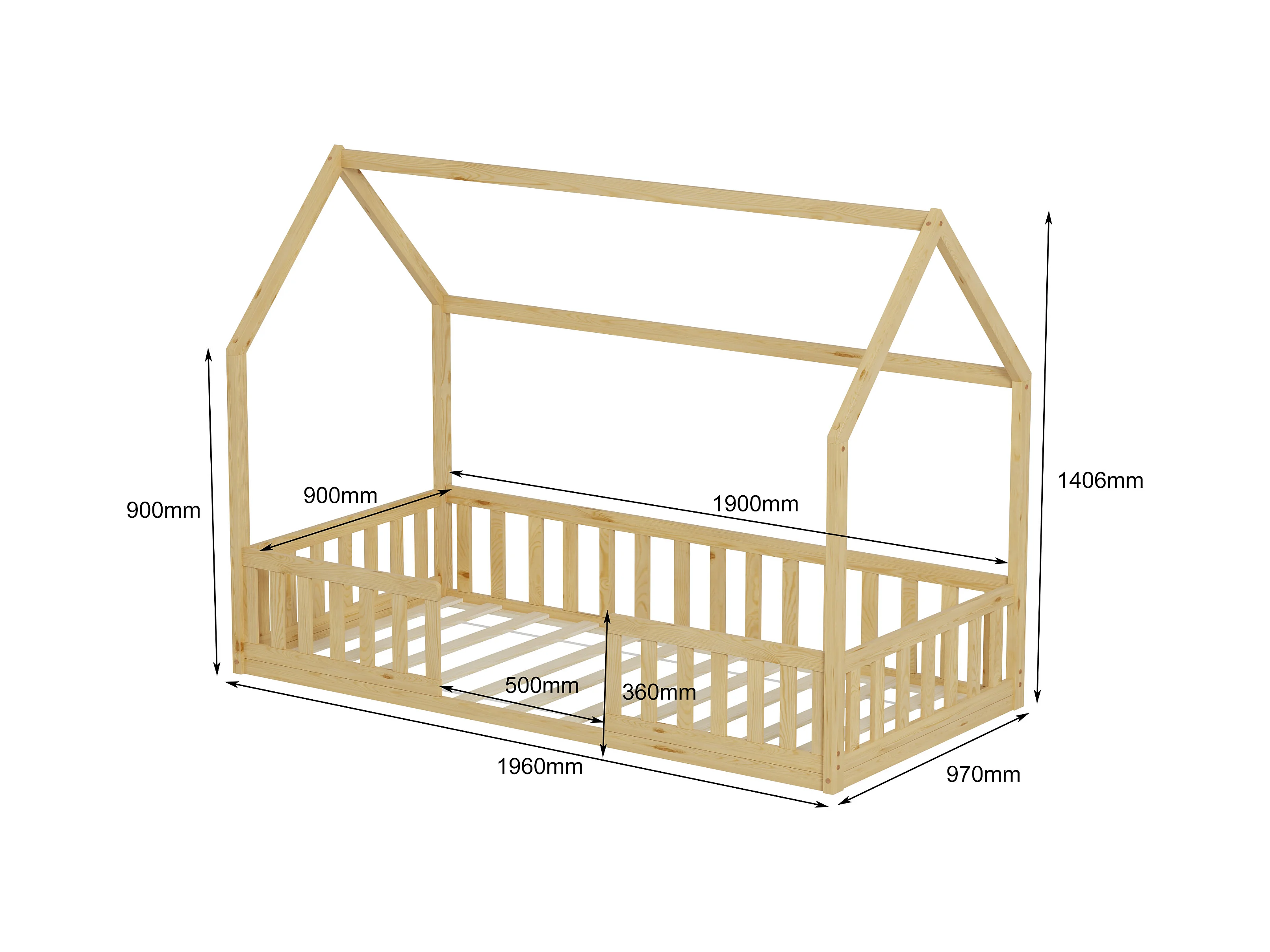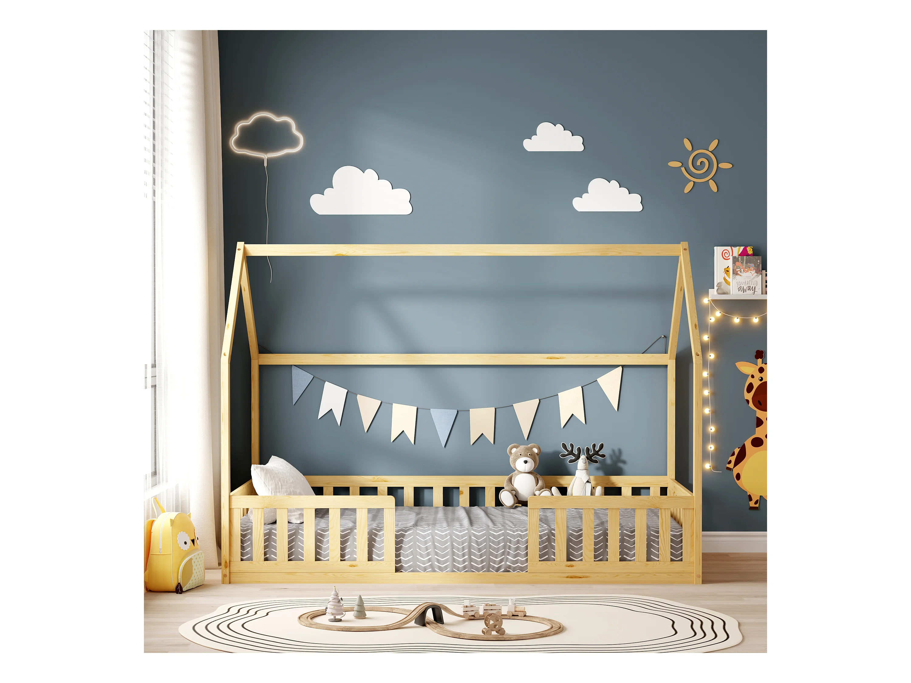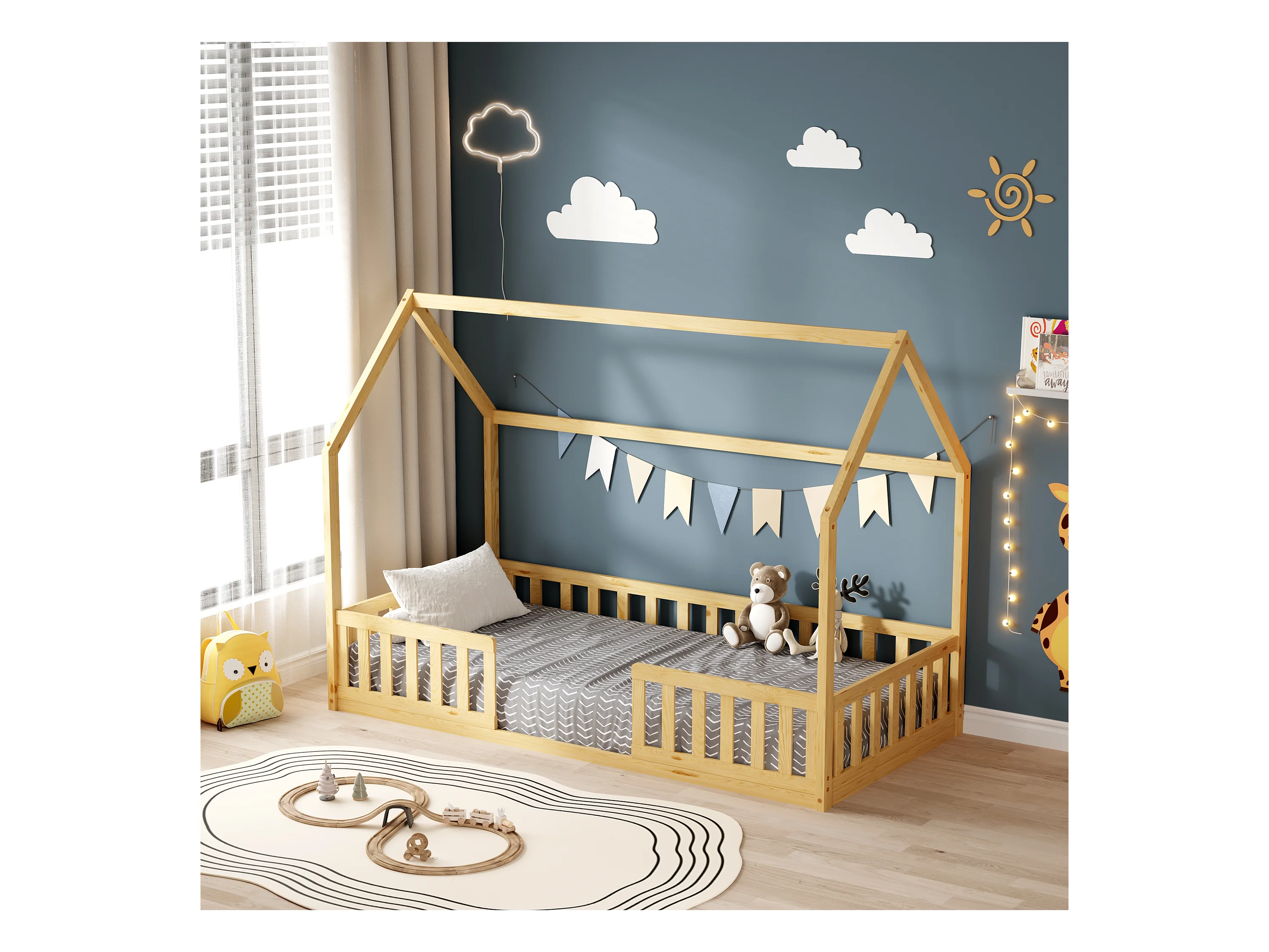 MINEA | Lit cabane avec barrière NID ENCHANTE 90x190 cm (matelas non inclus)