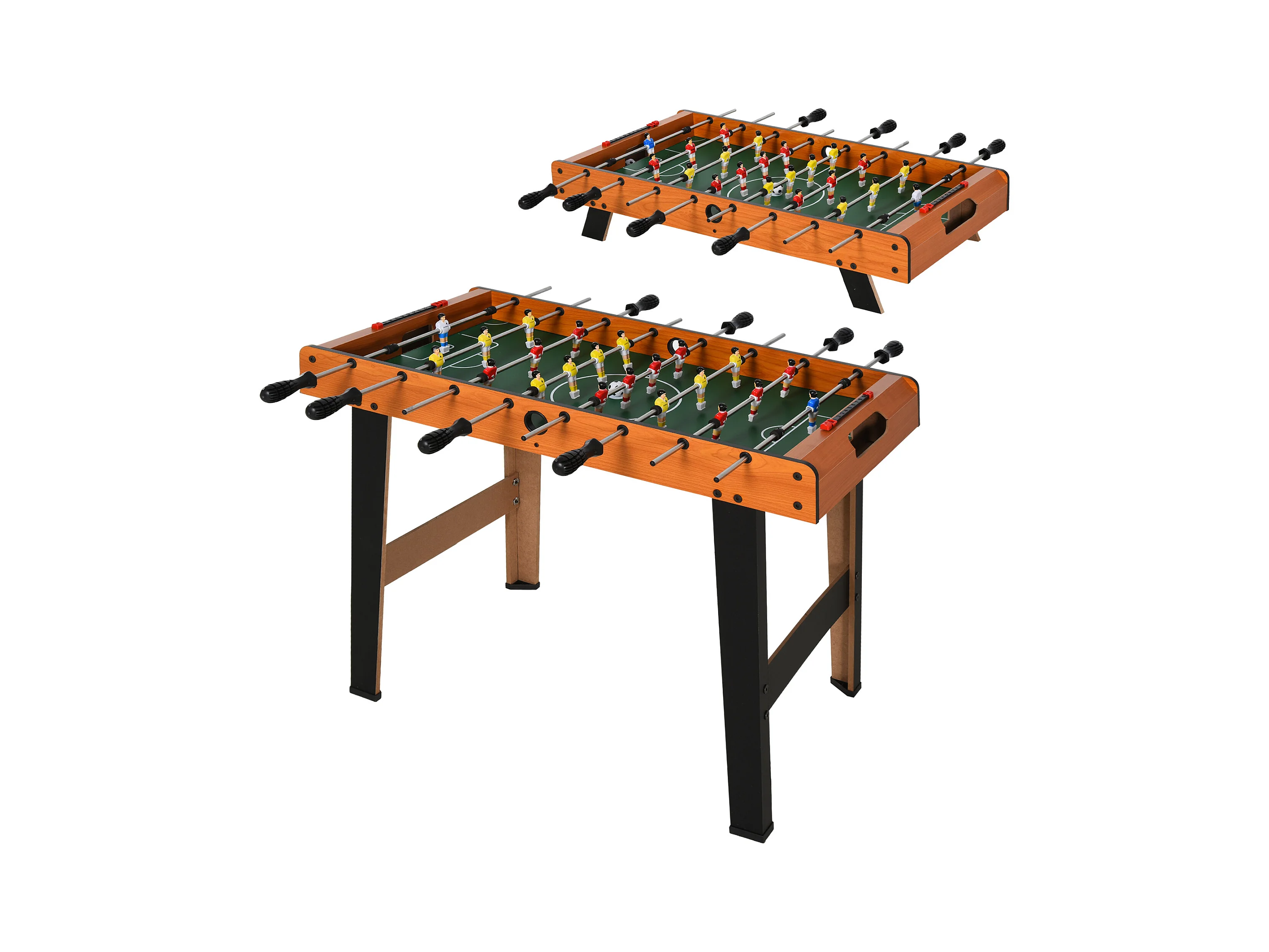 Mini babyfoot - table de baby-foot enfant - 2 balles, tableaux affichage - dim. 118L x 104l x 69H cm - noir aspect bois