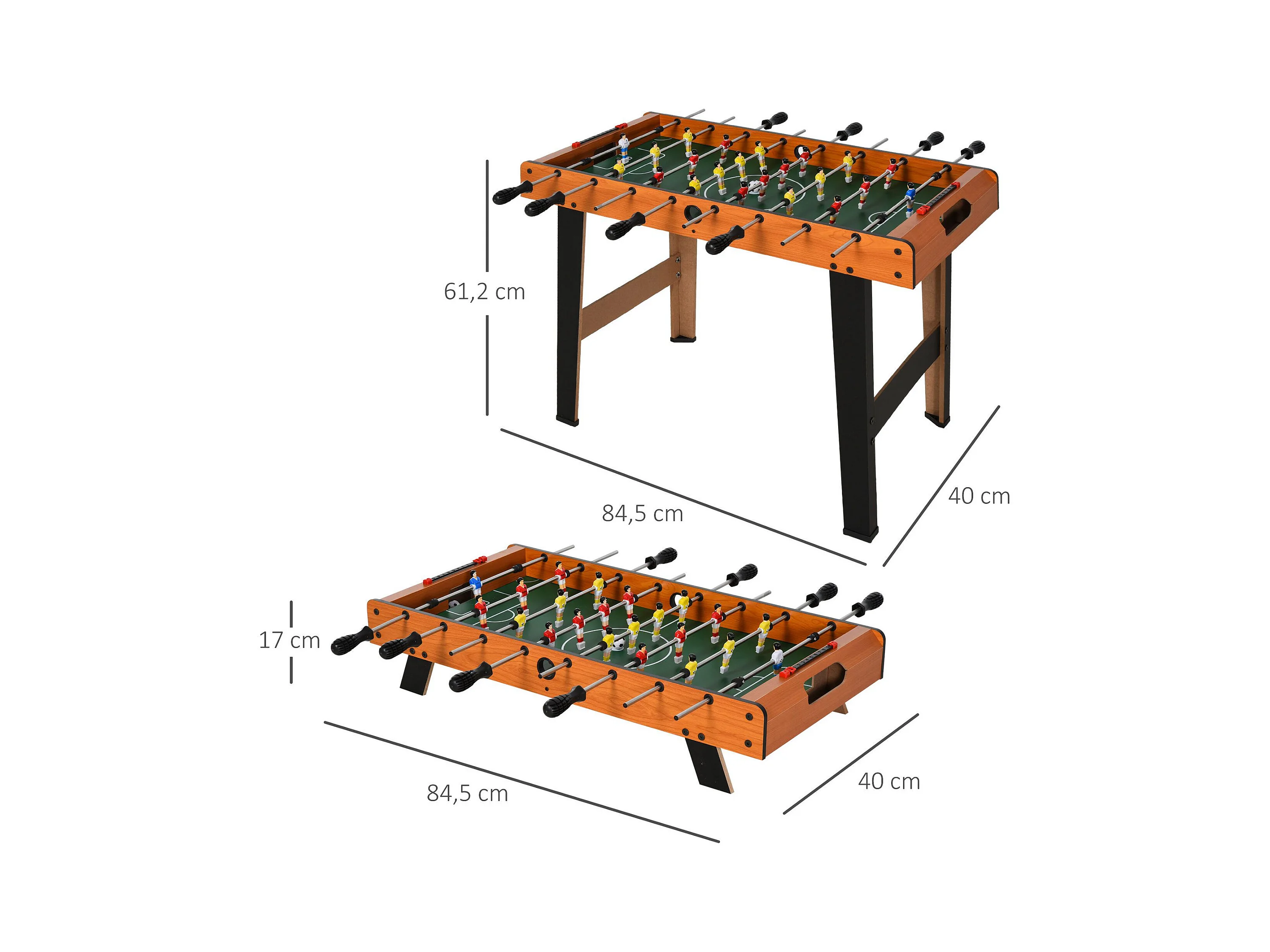 Mini babyfoot - table de baby-foot enfant - 2 balles, tableaux affichage - dim. 84,5L x 40l x 61,2H cm - noir aspect bois
