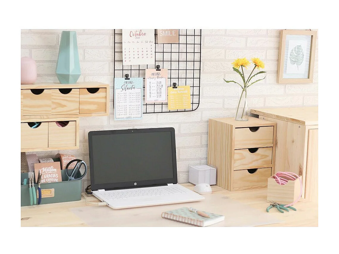 Mini rangement bloc en pin brut avec tiroirs 5 tiroirs