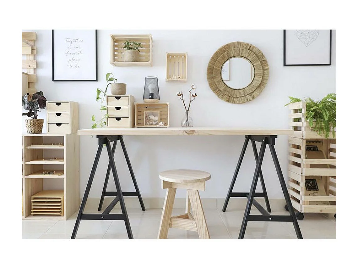 Caisse de rangement en pin brut (Lot de 3)