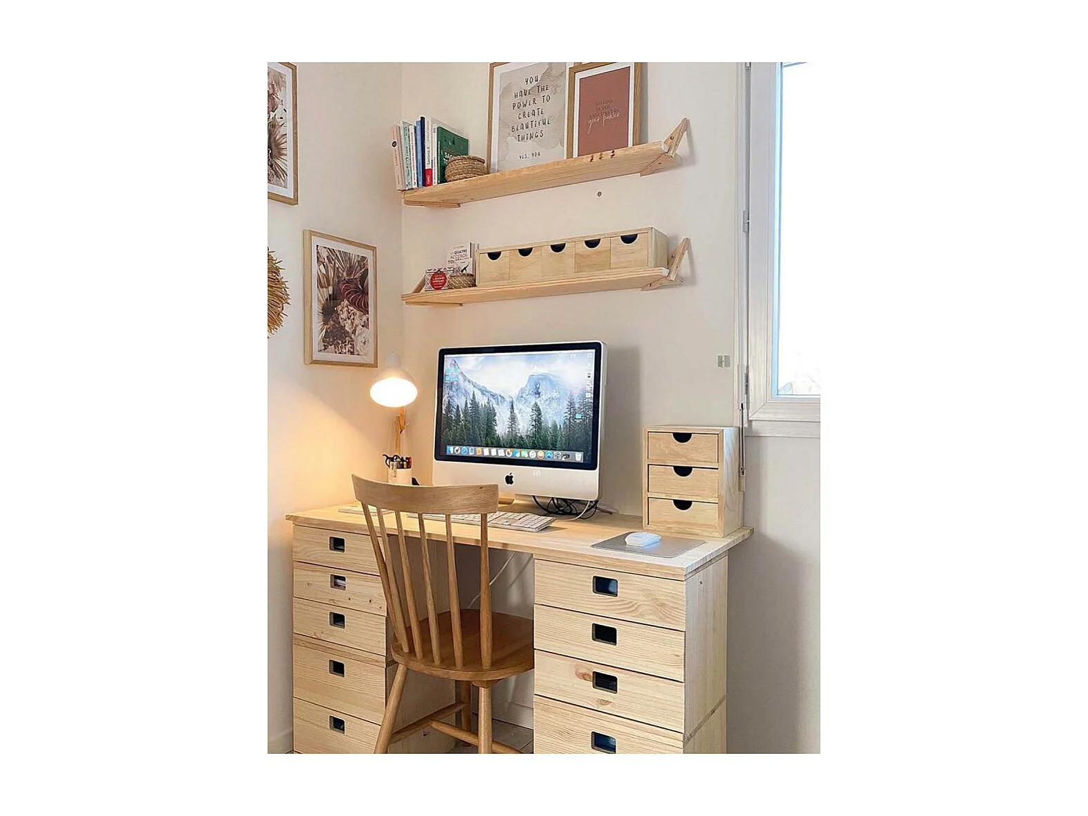 Mini rangement bloc en pin brut avec tiroirs 6 tiroirs M2