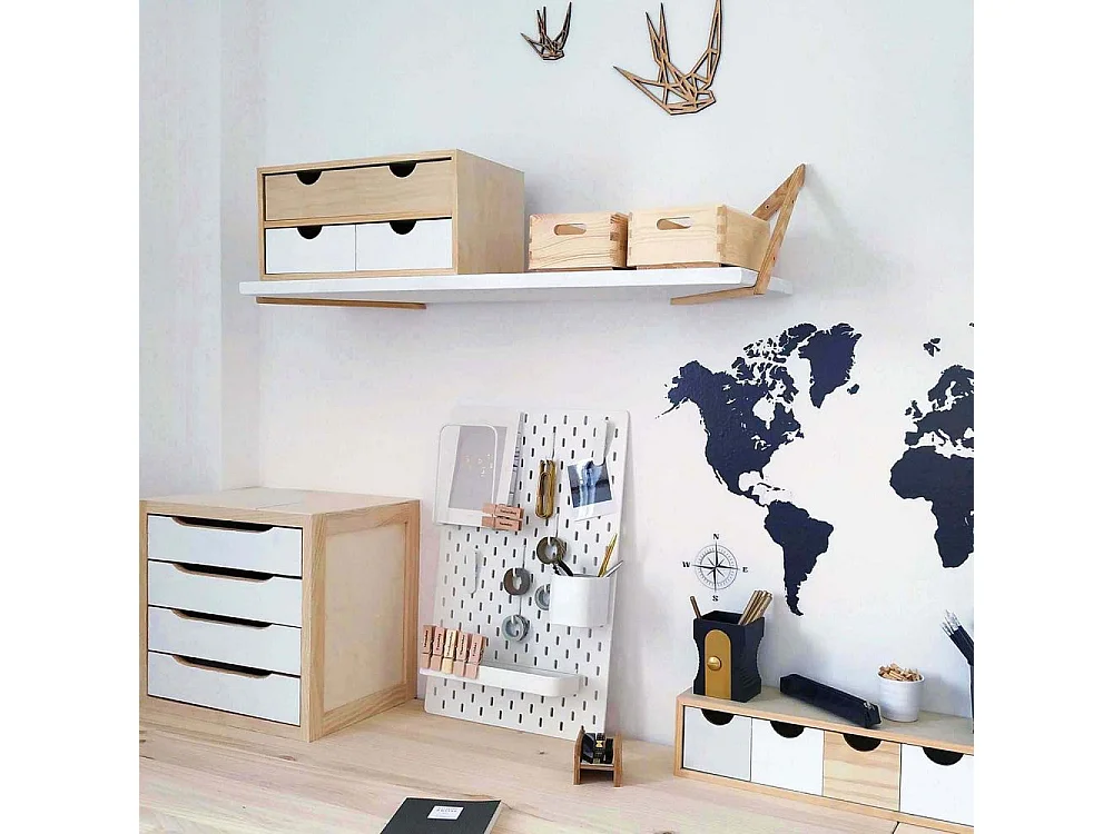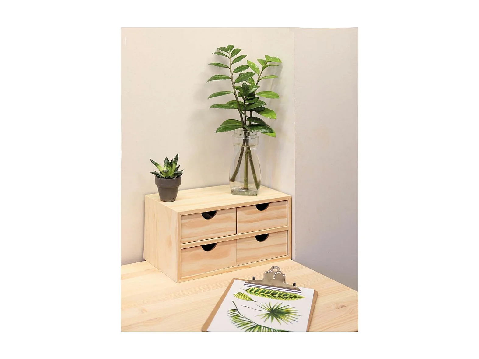 Mini rangement bloc en pin brut avec tiroirs 4 tiroirs