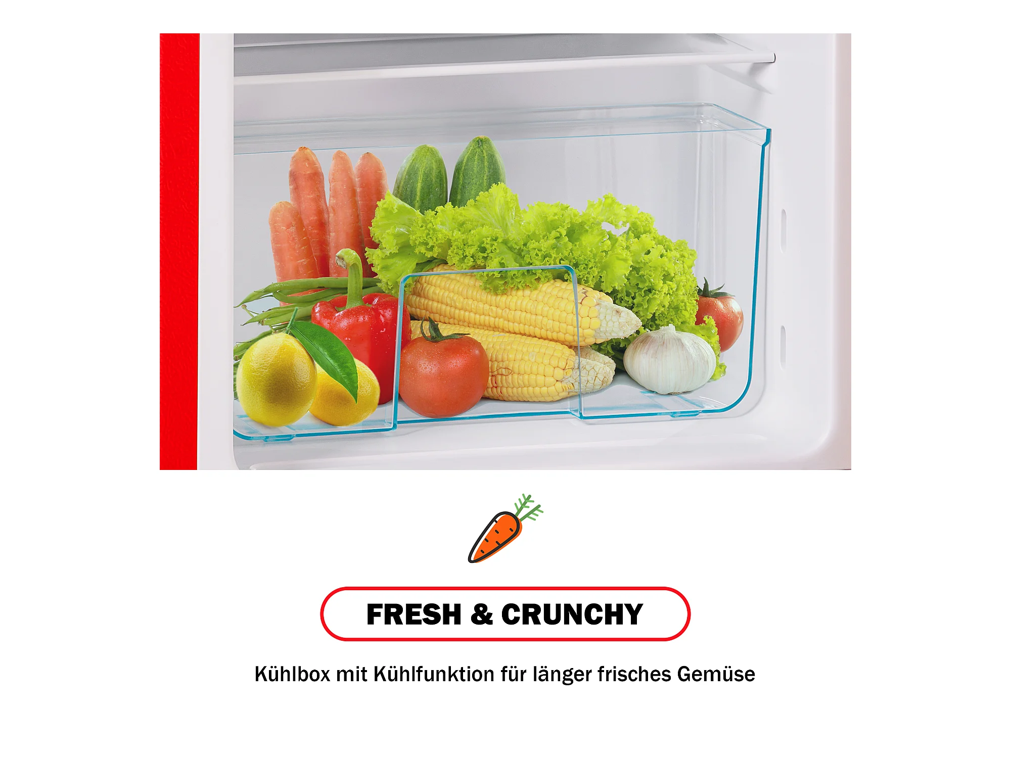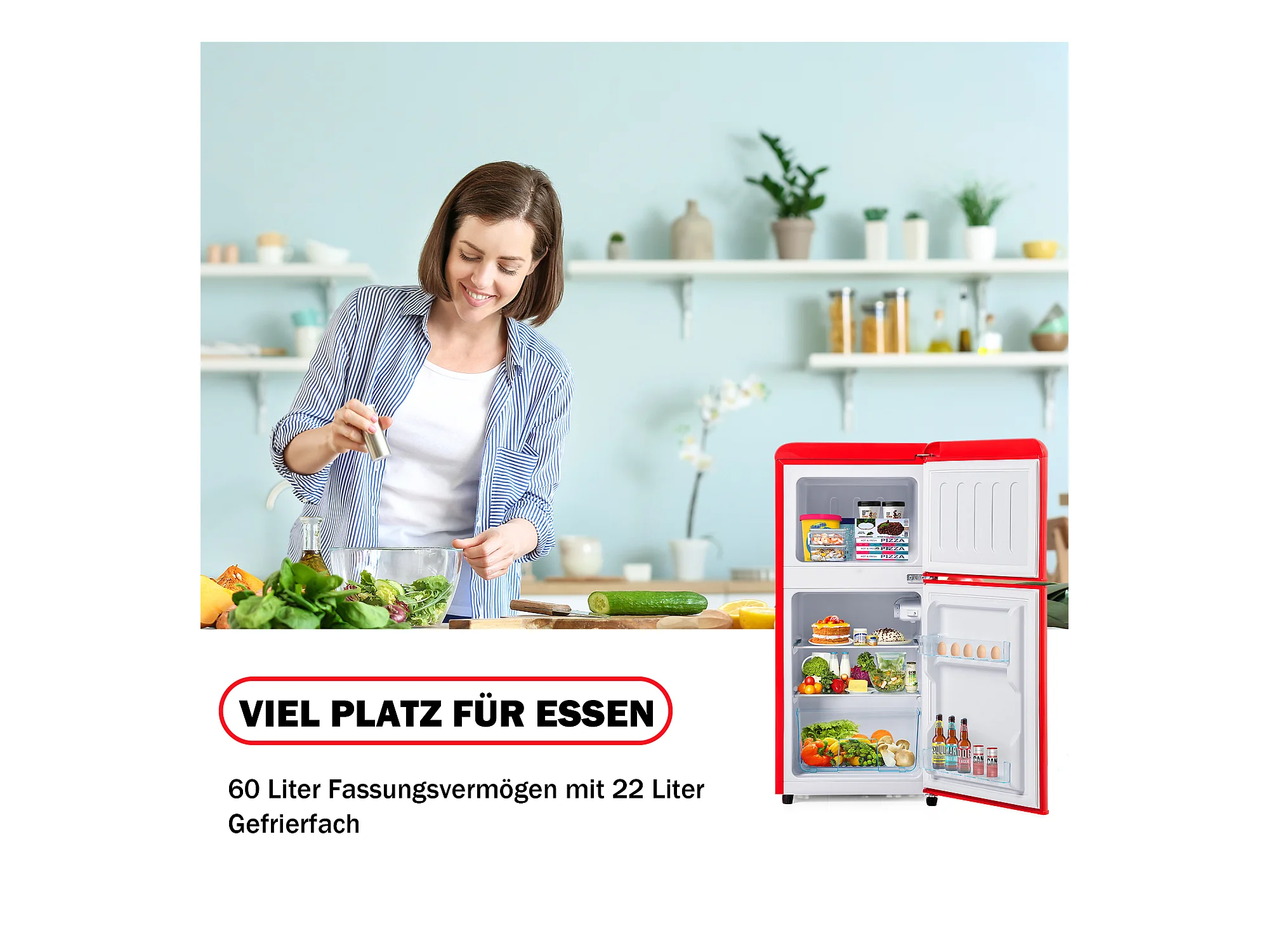 Mini Réfrigérateur Retro, 60L Total, 22L Congélateur, 38L Réfrigérateur, Énergie Classe E, LED, Design Rétro, Rouge (88.8x45.5x42.5cm)