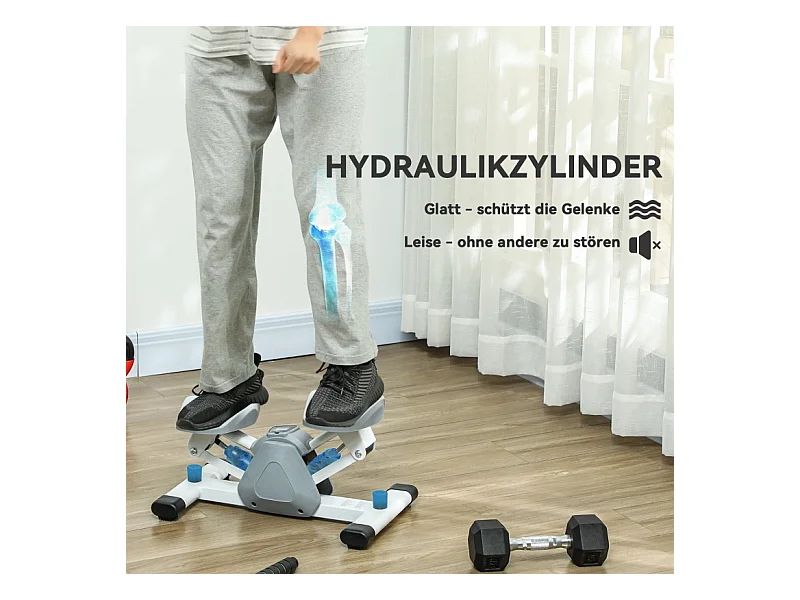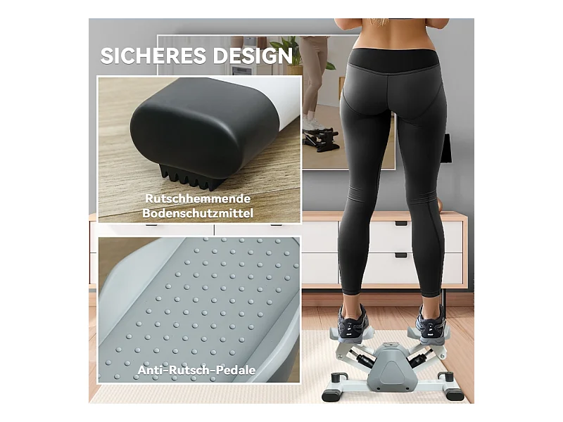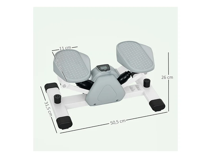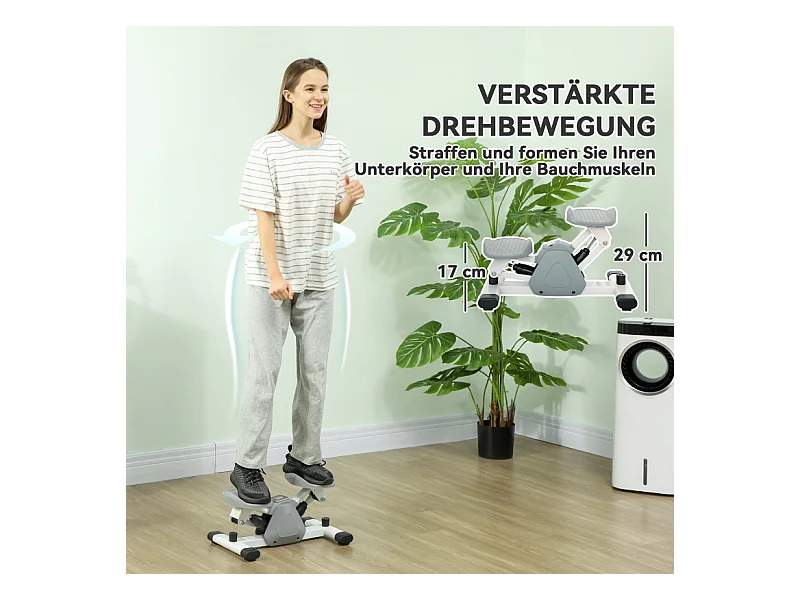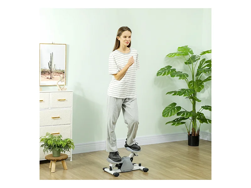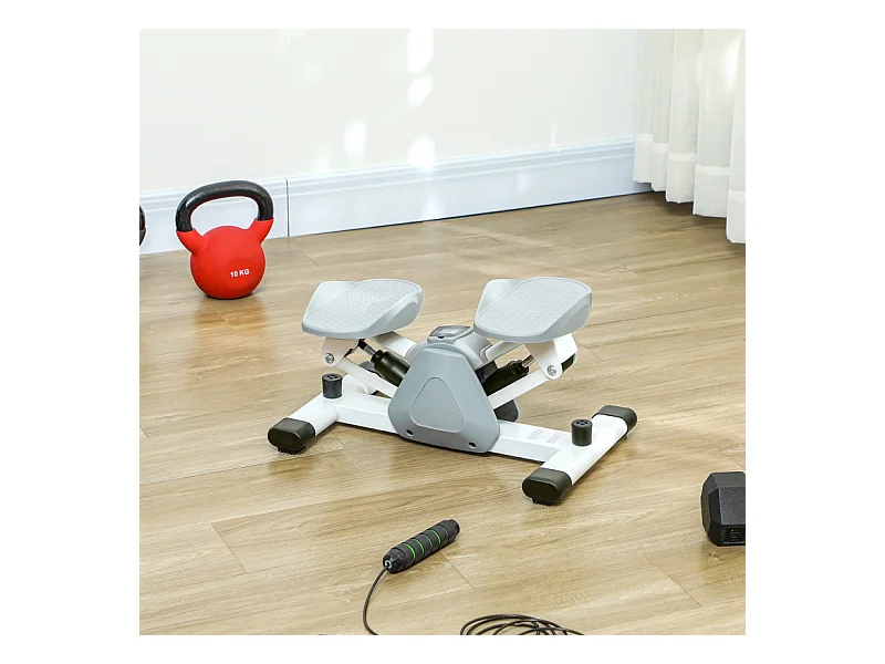 Mini-stepper 2 en 1 avec cordes de résistance, LCD et mouvement oscillant, plastique, gris (41x30.5x18.5 cm)