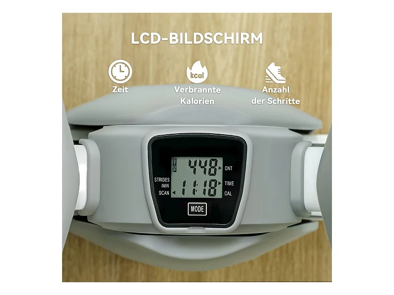 Mini stepper d'entraînement avec affichage LCD, pédales antidérapantes, plastique, gris (50.5x31.5x26 cm)