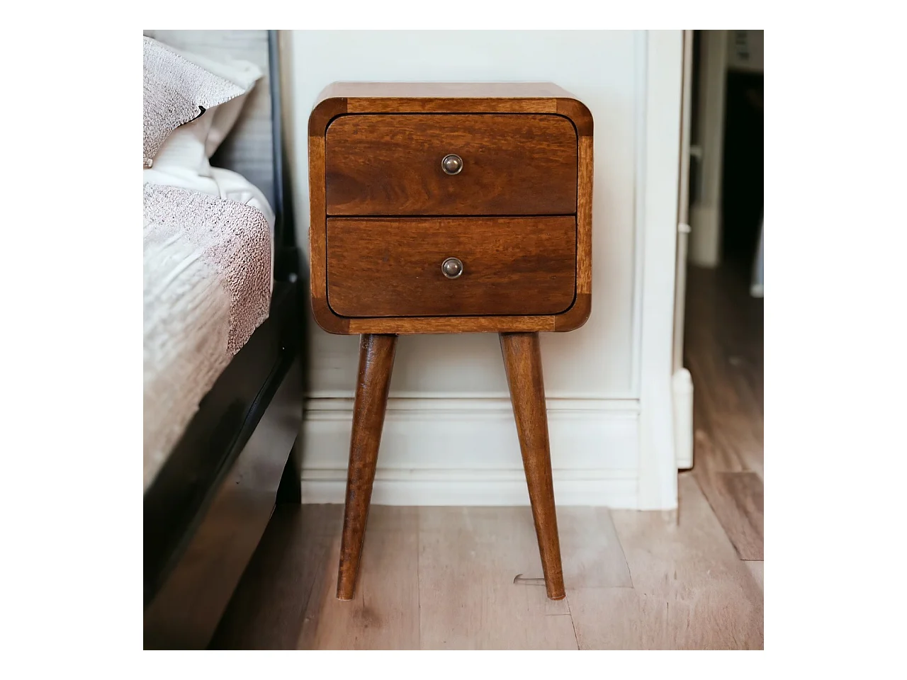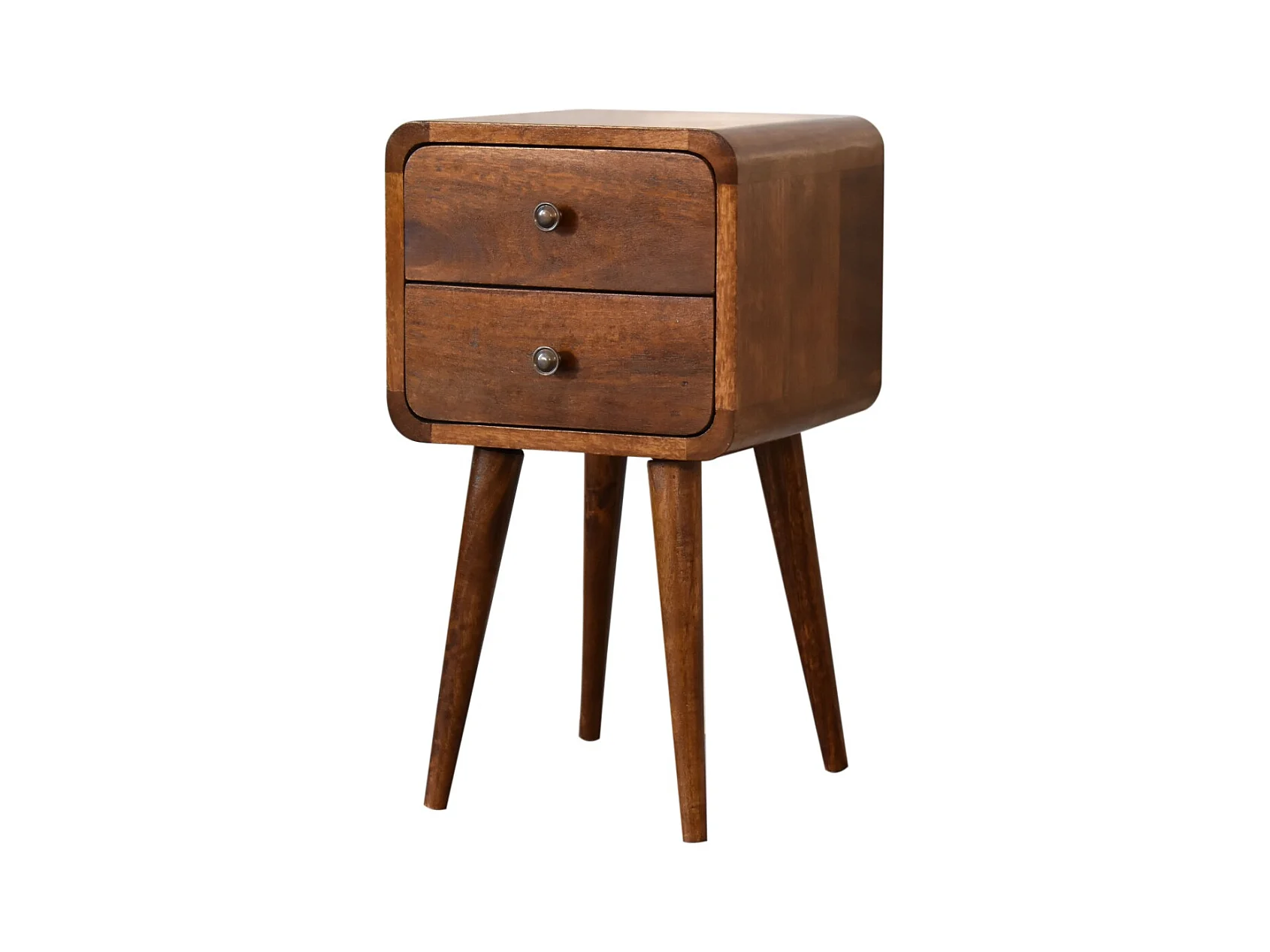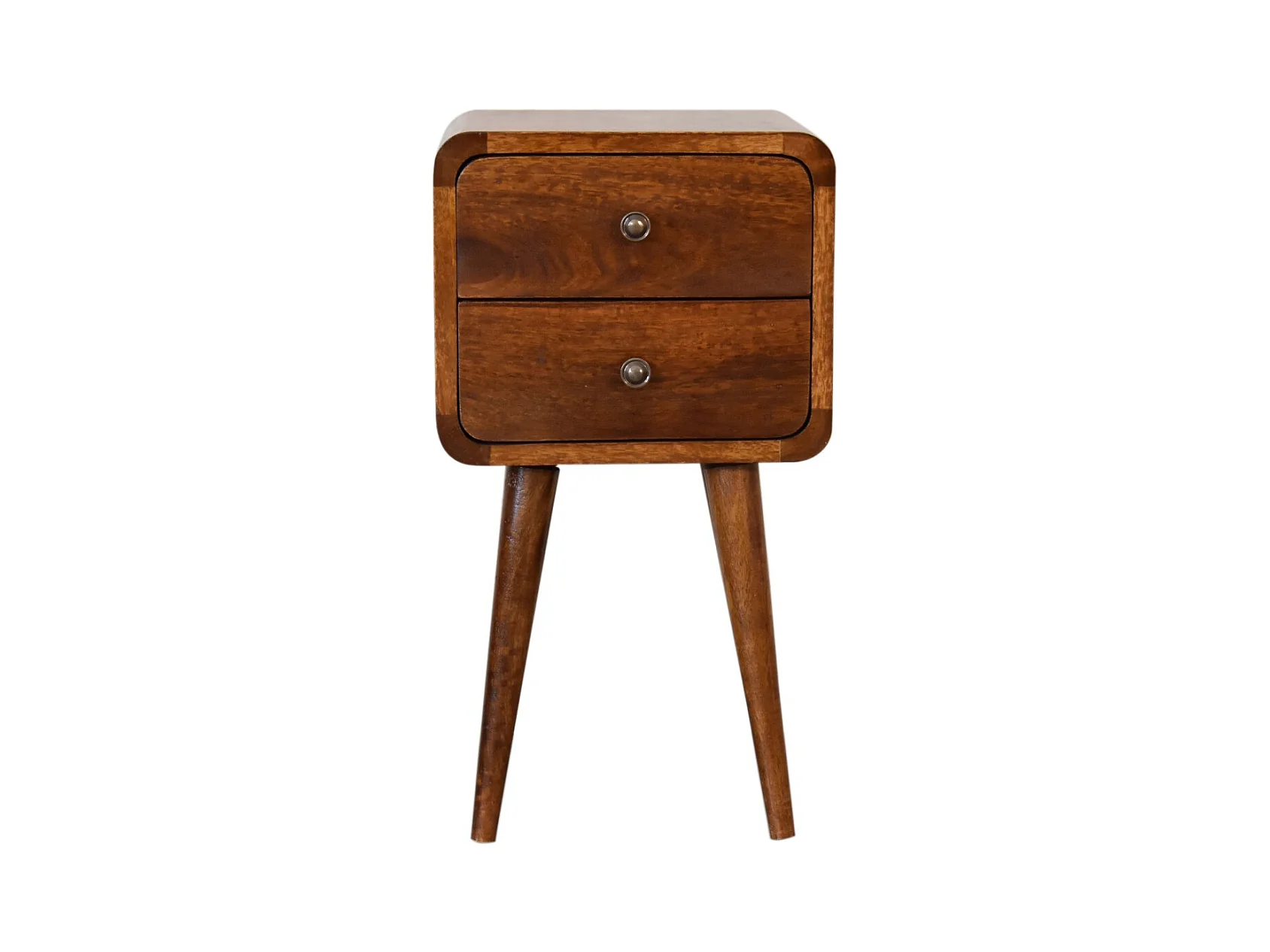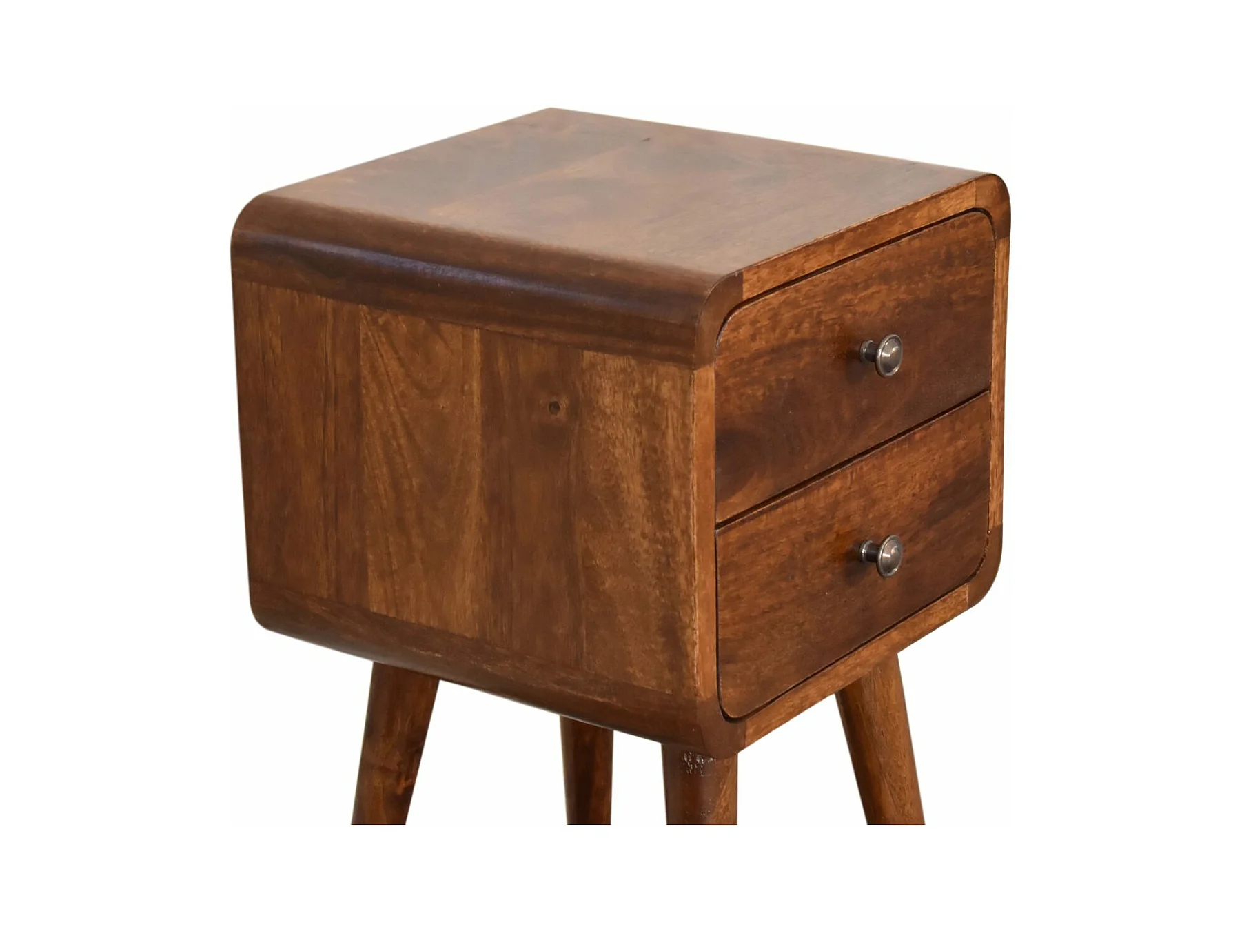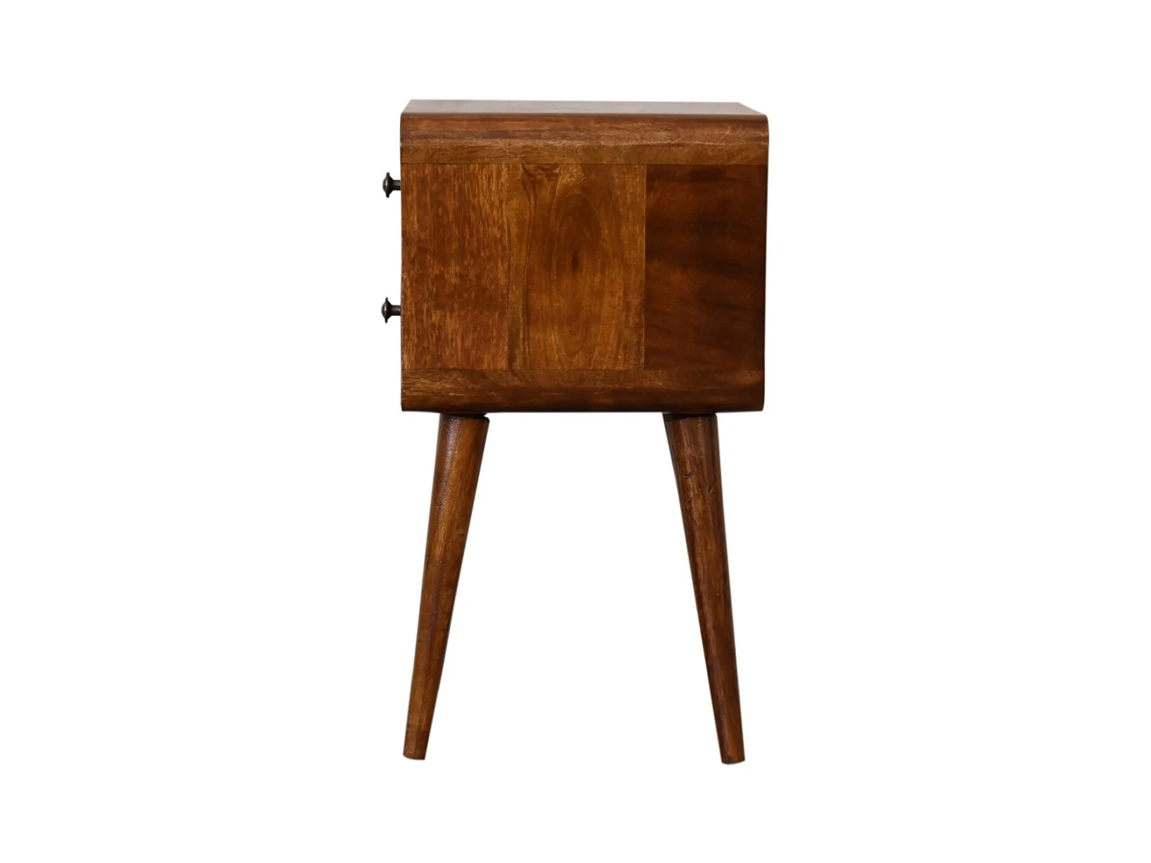 Mini Table de Nuit Cube en Châtaignier à 2 Tiroirs