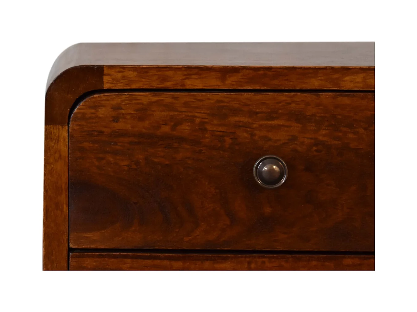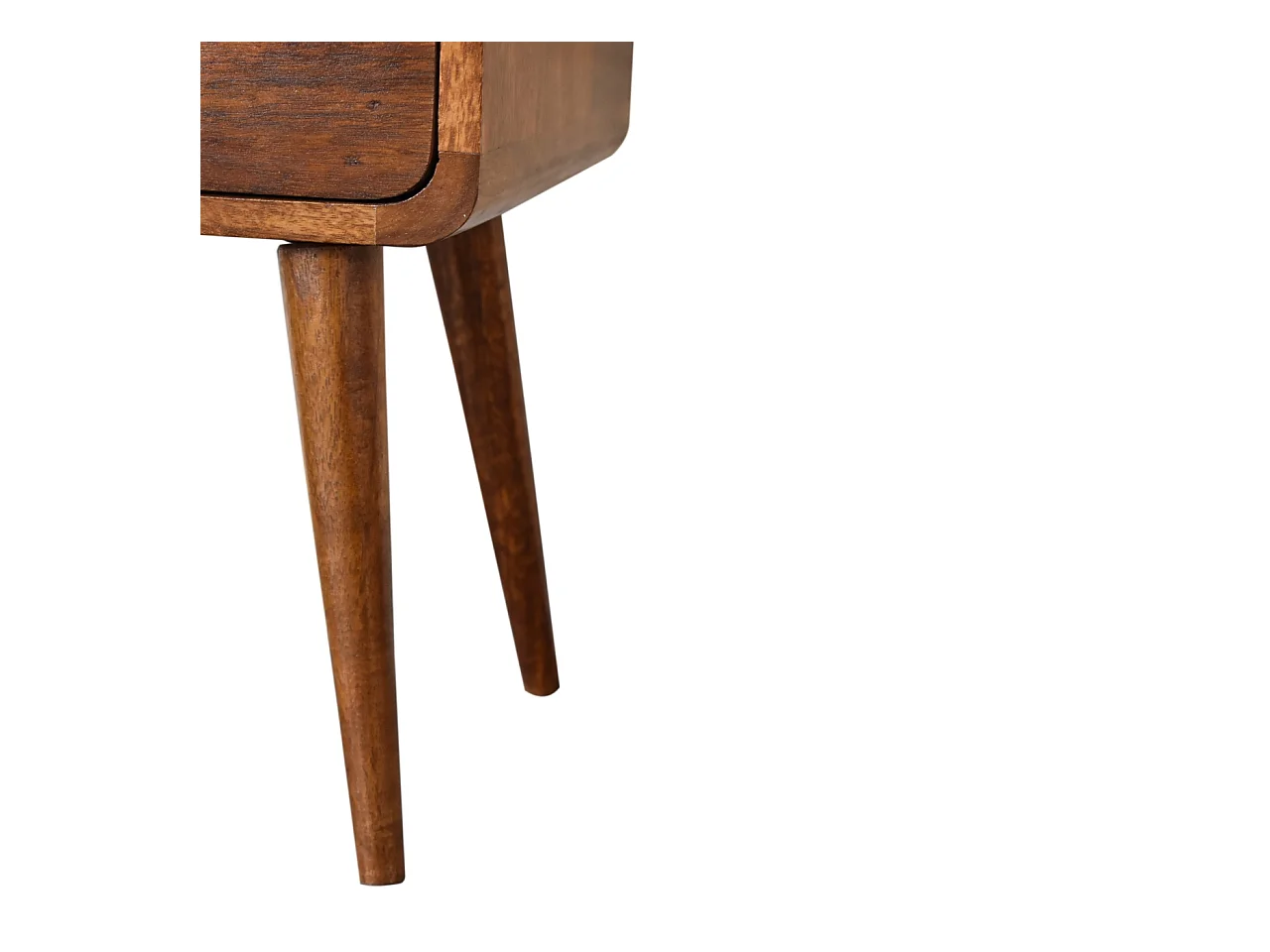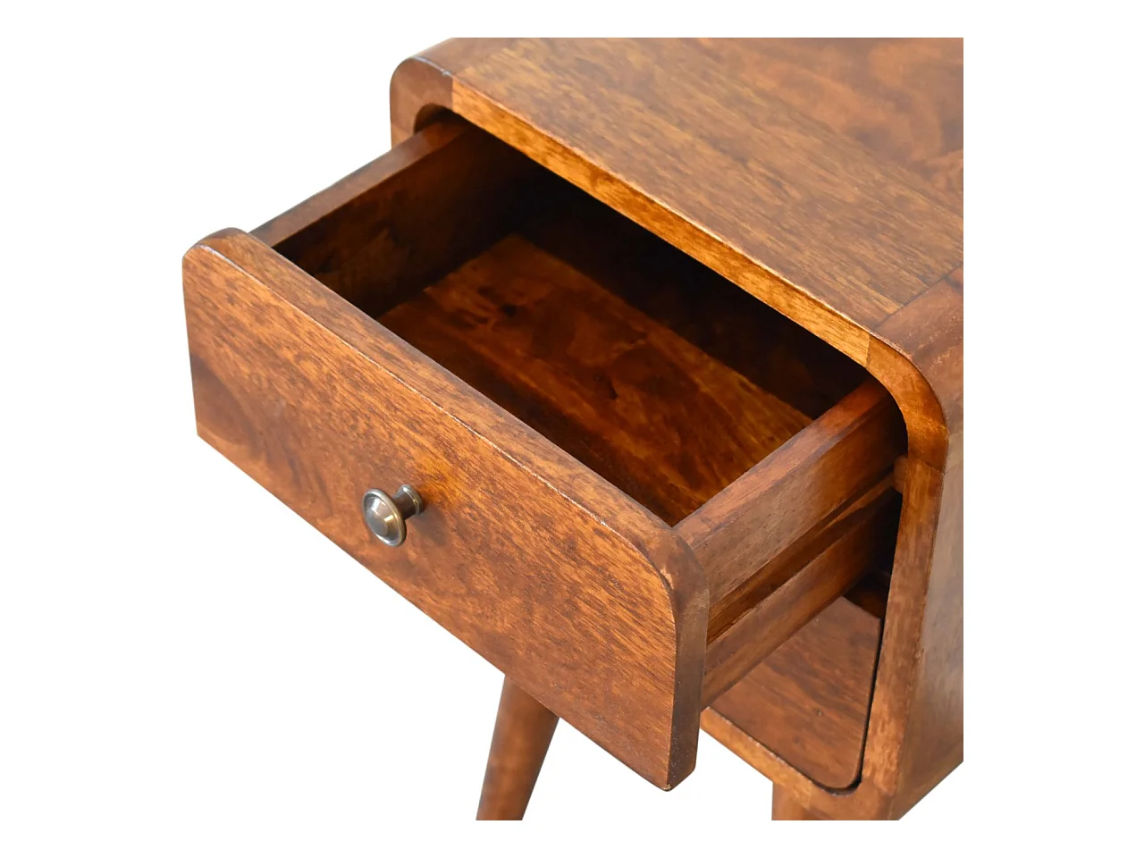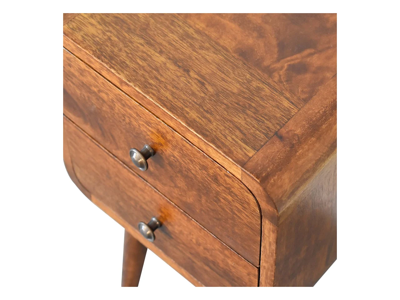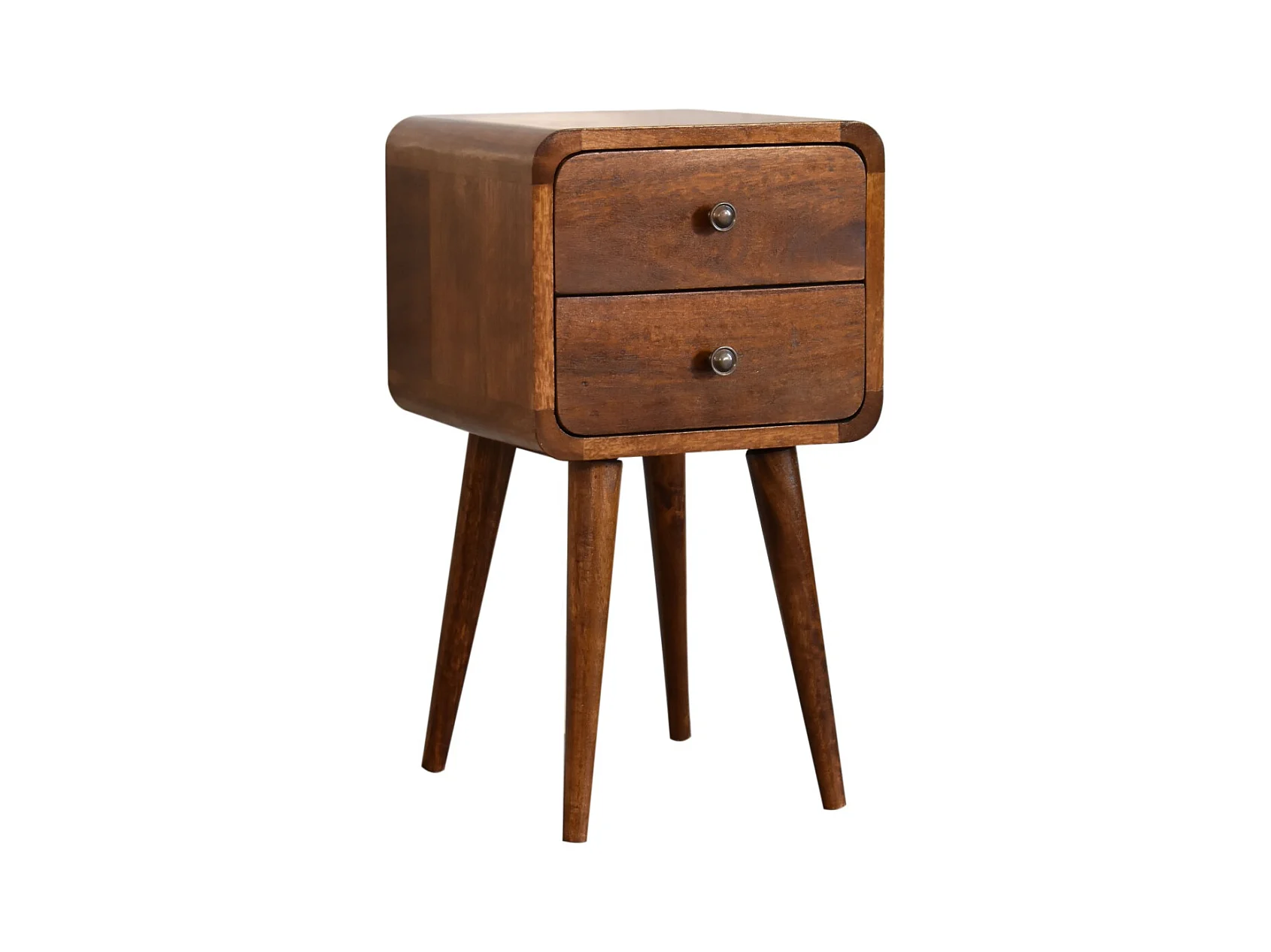 Mini Table de Nuit Cube en Châtaignier à 2 Tiroirs