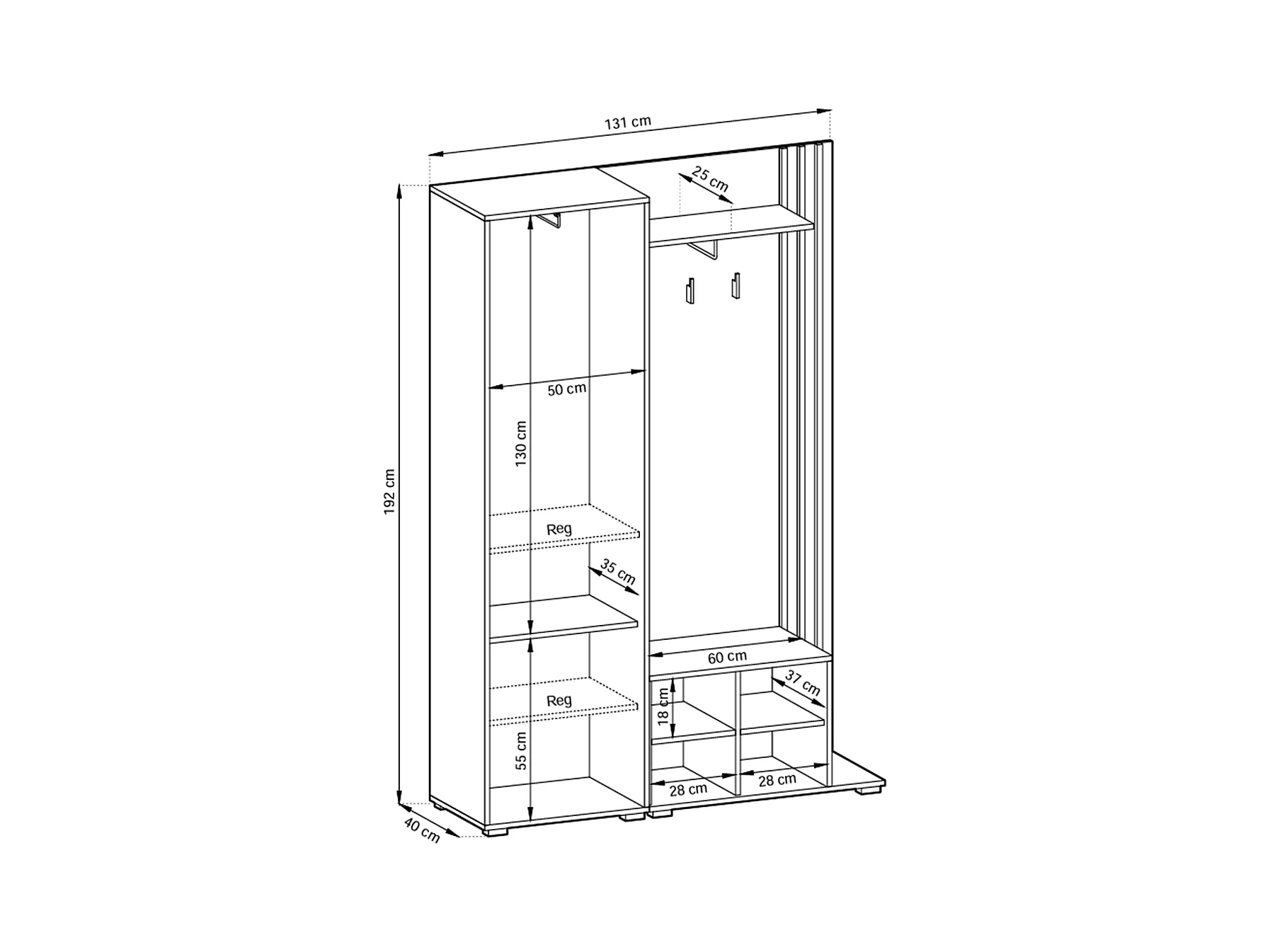 MINIO go for it, ensemble de garde-robe NEL, avec siège rembourré noir, avec miroir, cachemire/noir