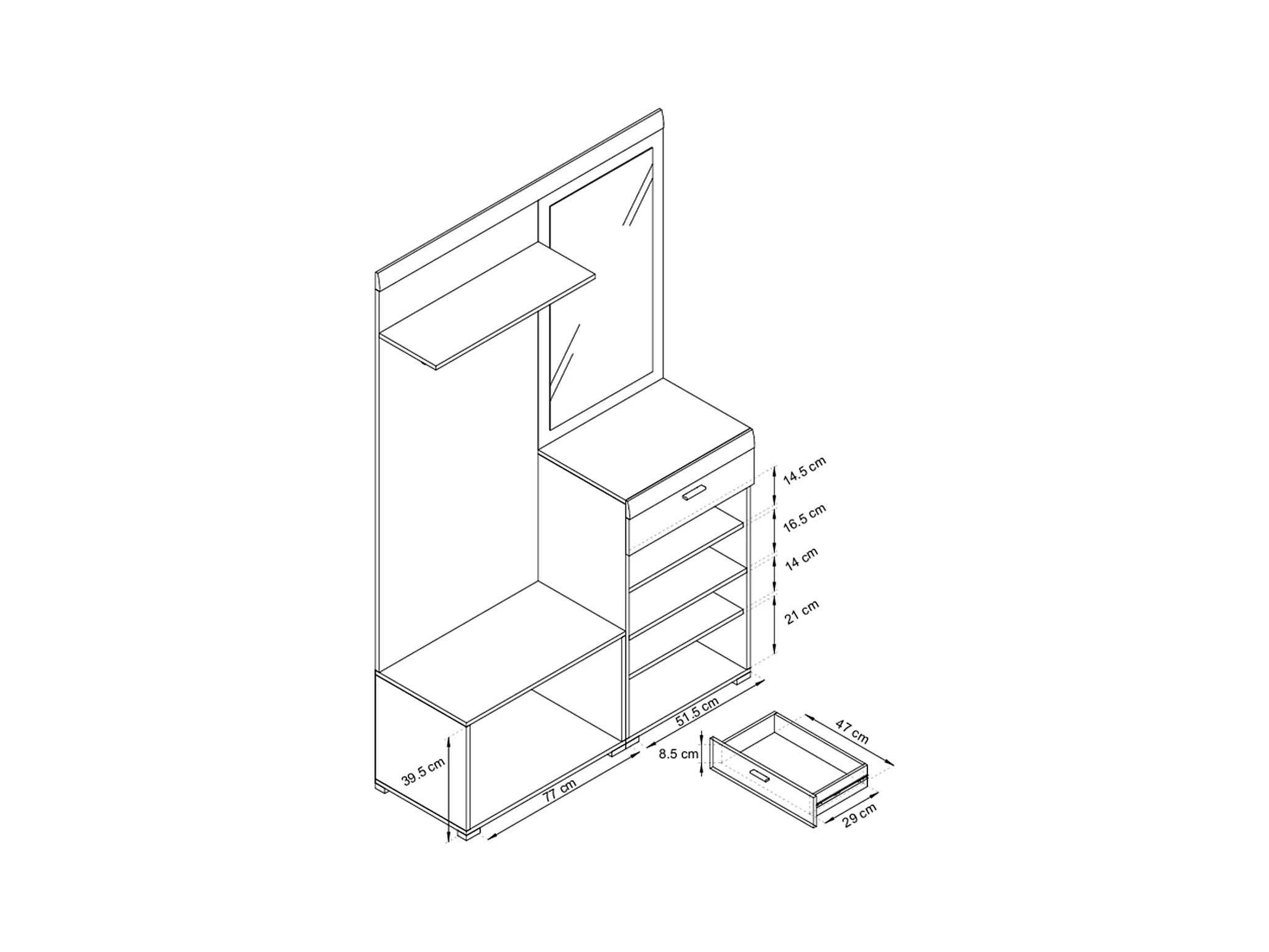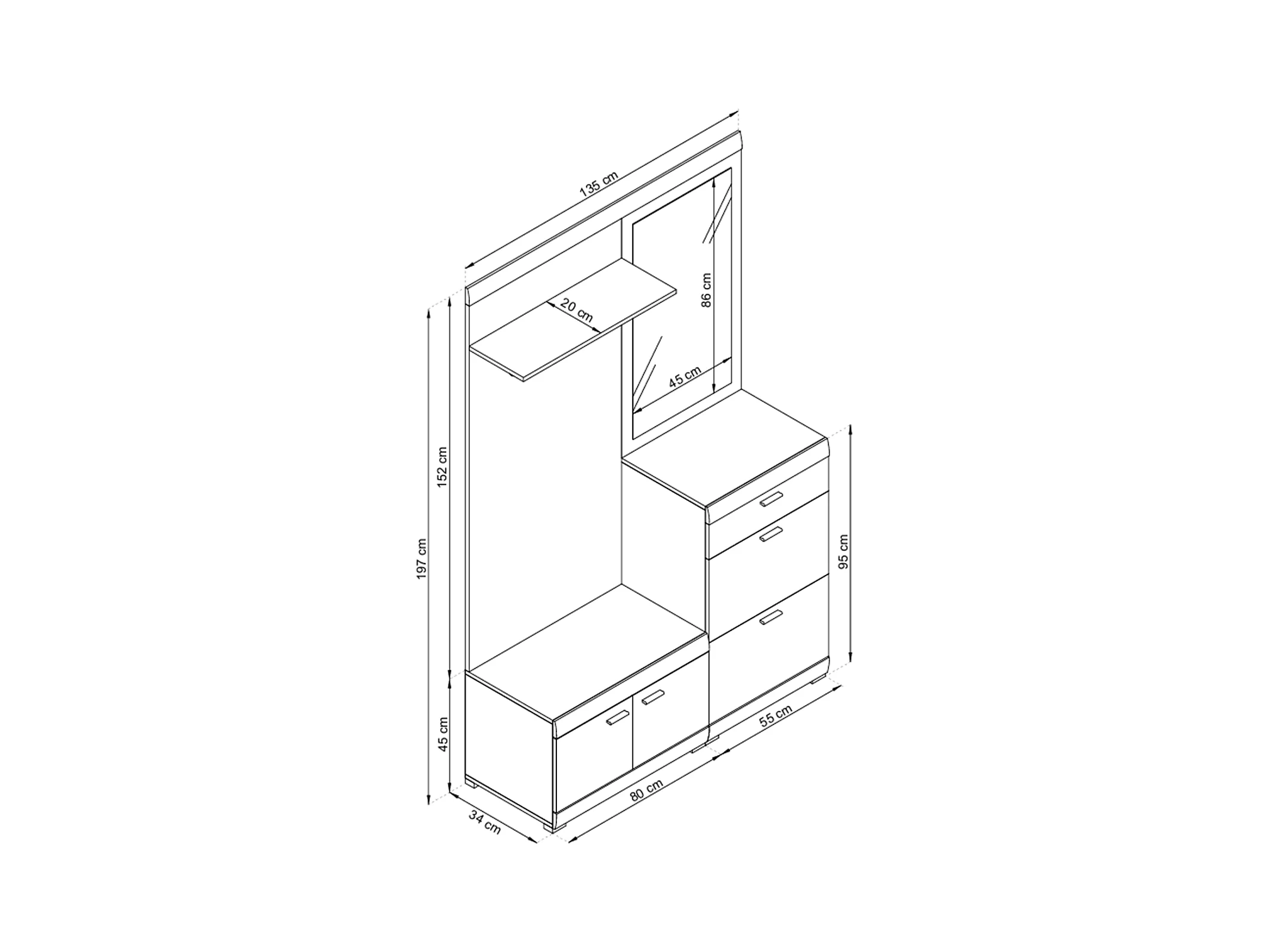 MINIO go for it, ensemble de garde-robe STELLA, avec miroir, chêne riviera/blanc