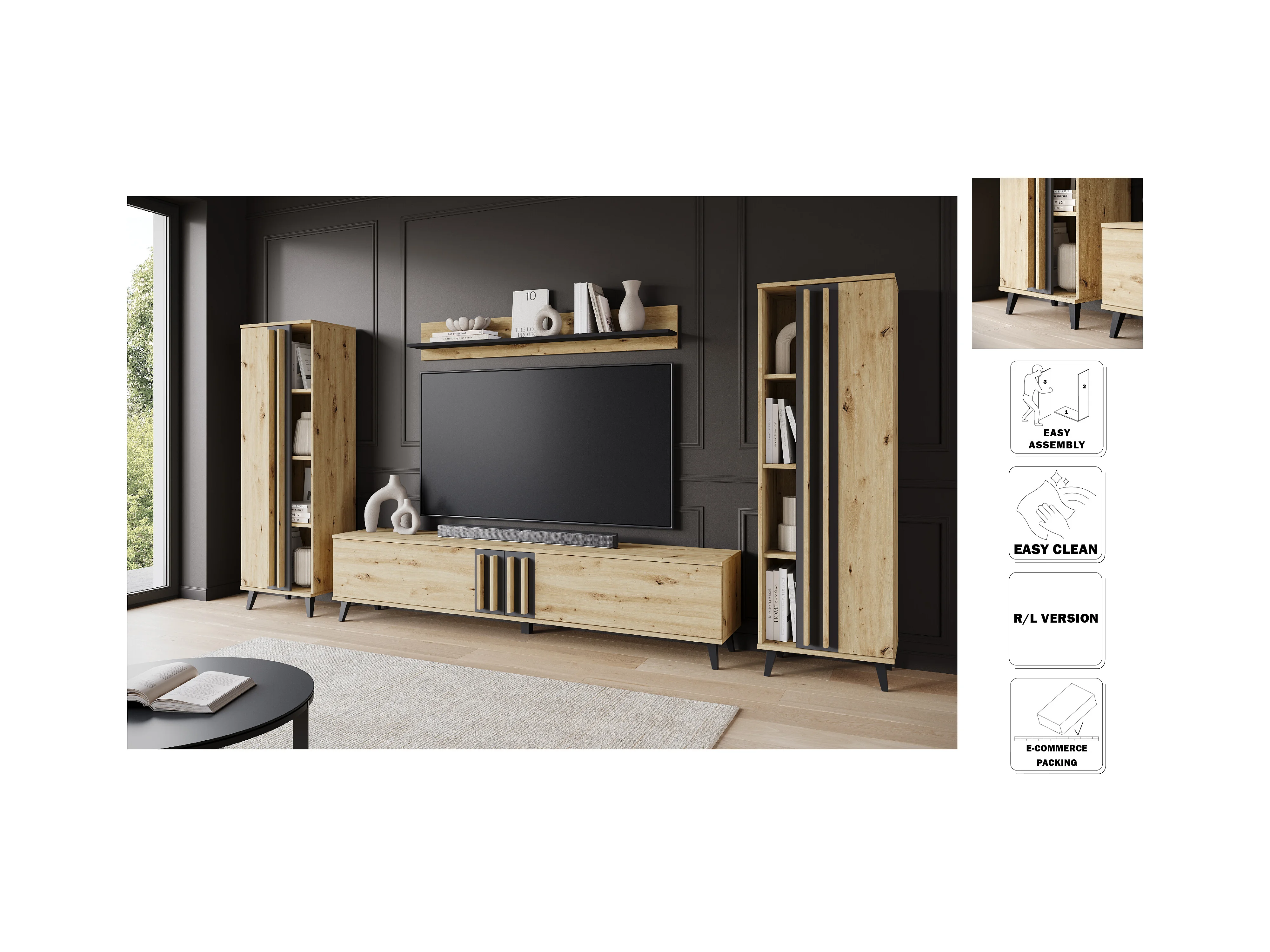 MINIO go for it, Meuble mural HURON I chêne artisan/noir