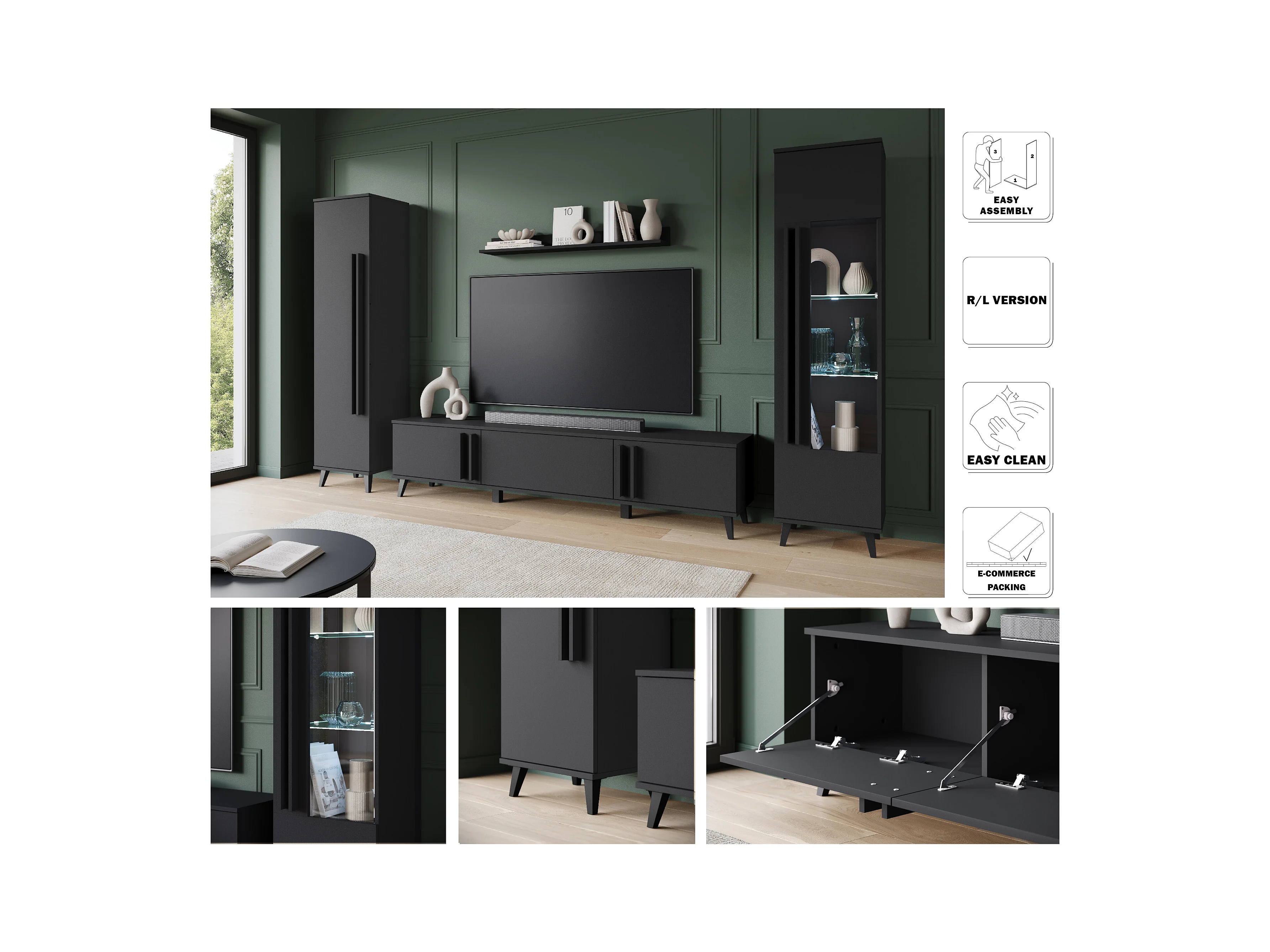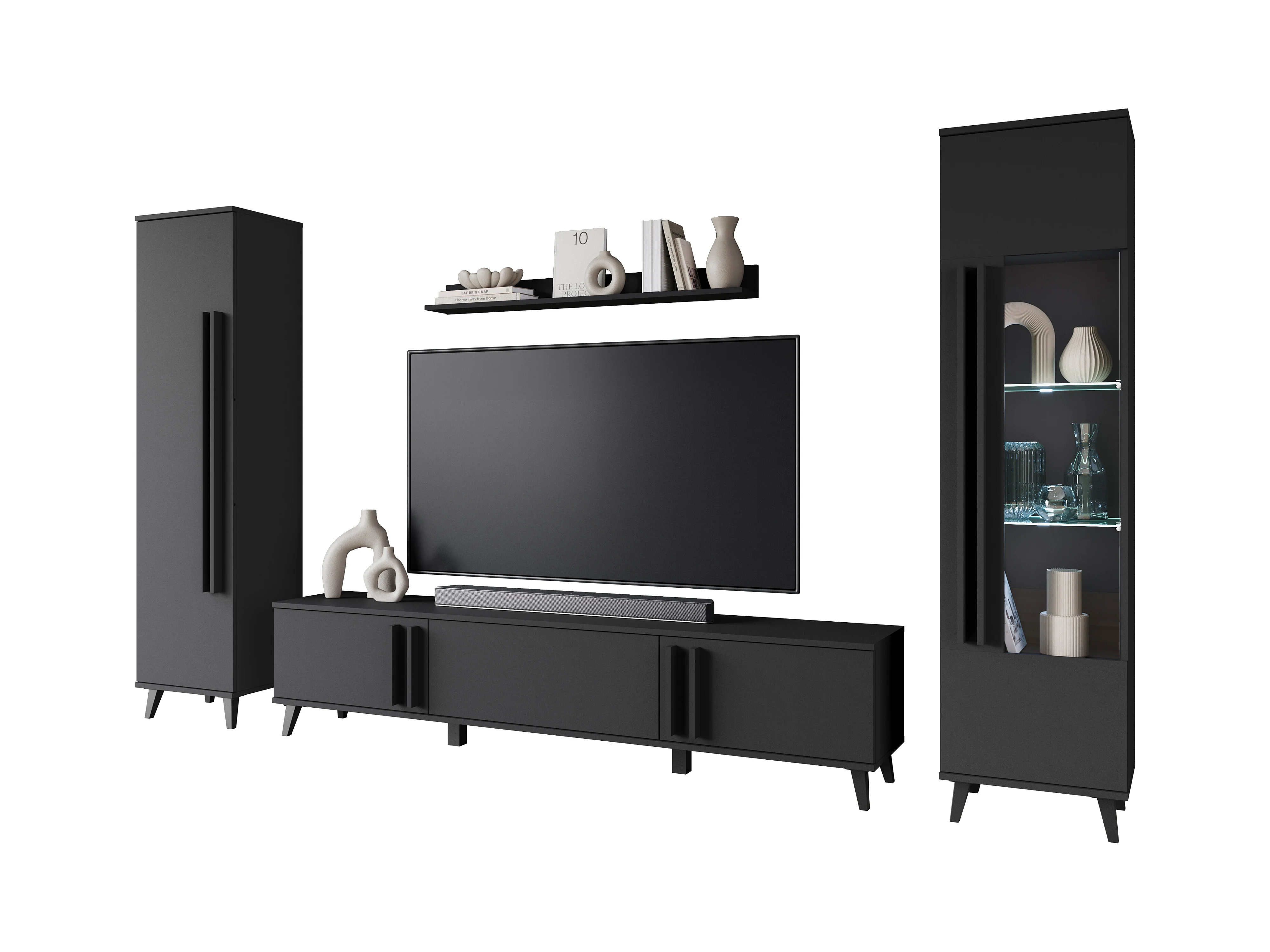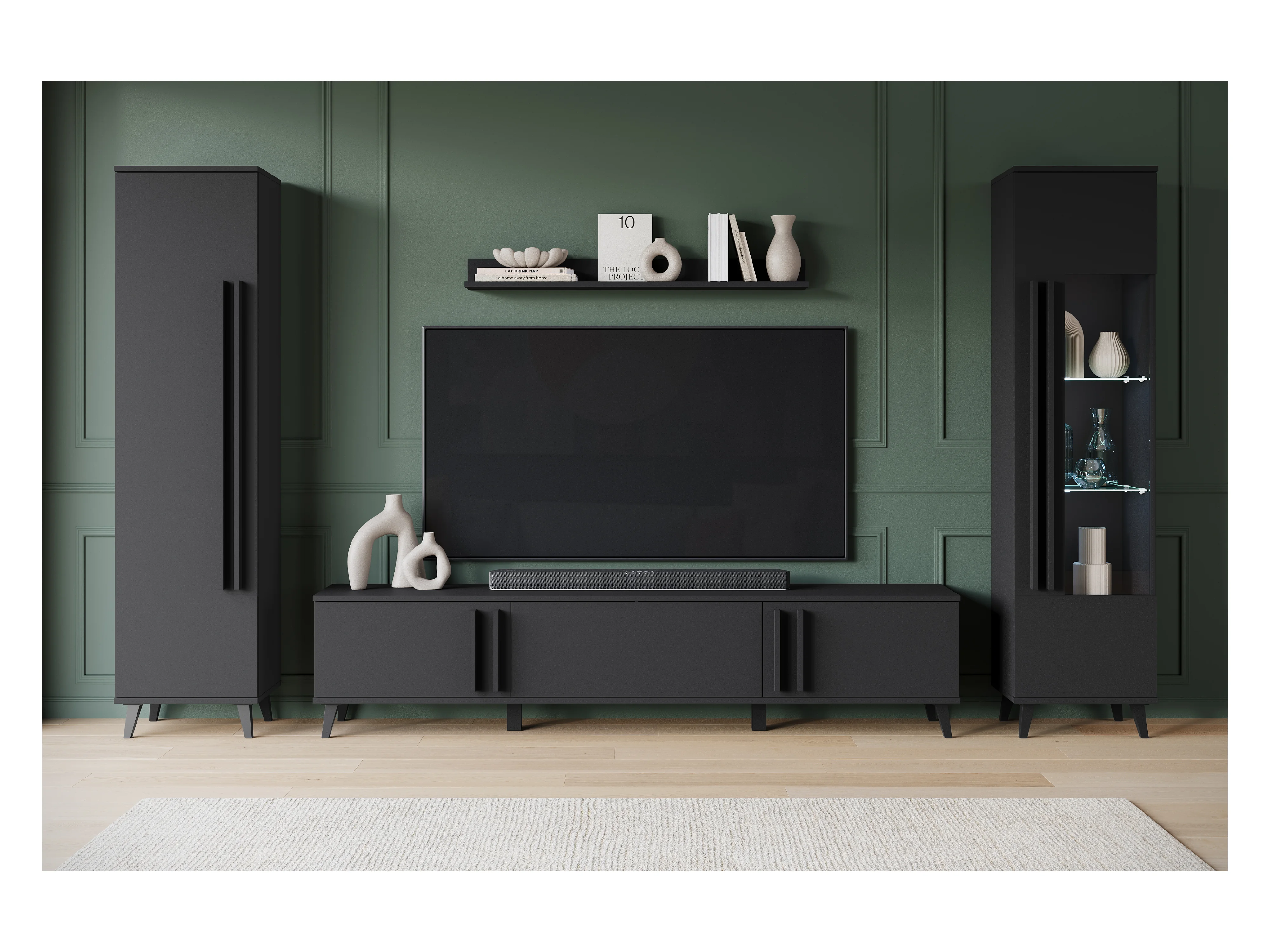 MINIO go for it, Meuble mural HURON II noir avec éclairage LED