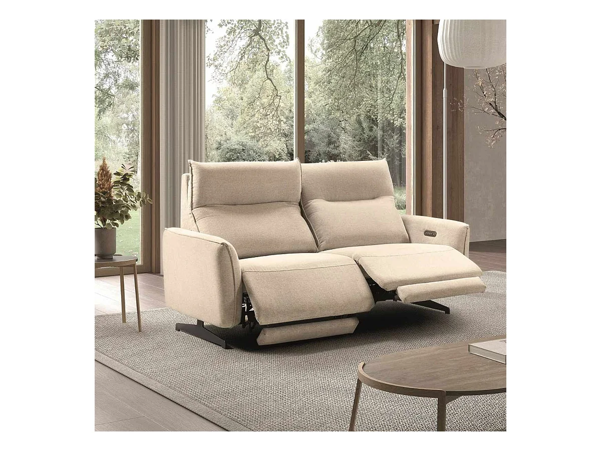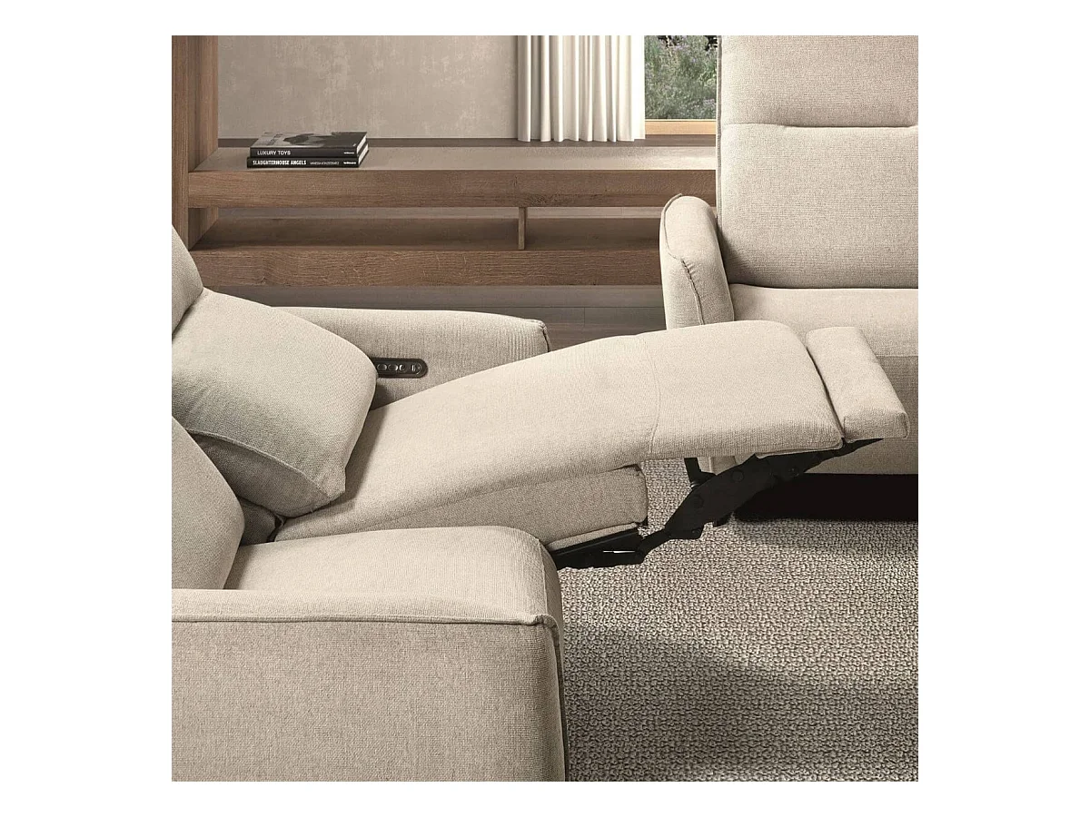 Canapé relax électrique 3 places tissu polyester beige - MIRAMAR