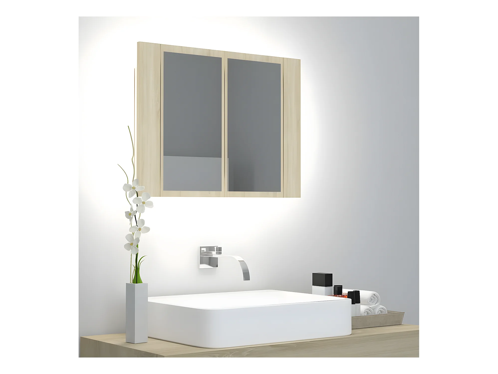 Miroir à LED de bain Chêne sonoma 60x12x45 Acrylique WVGQ9746