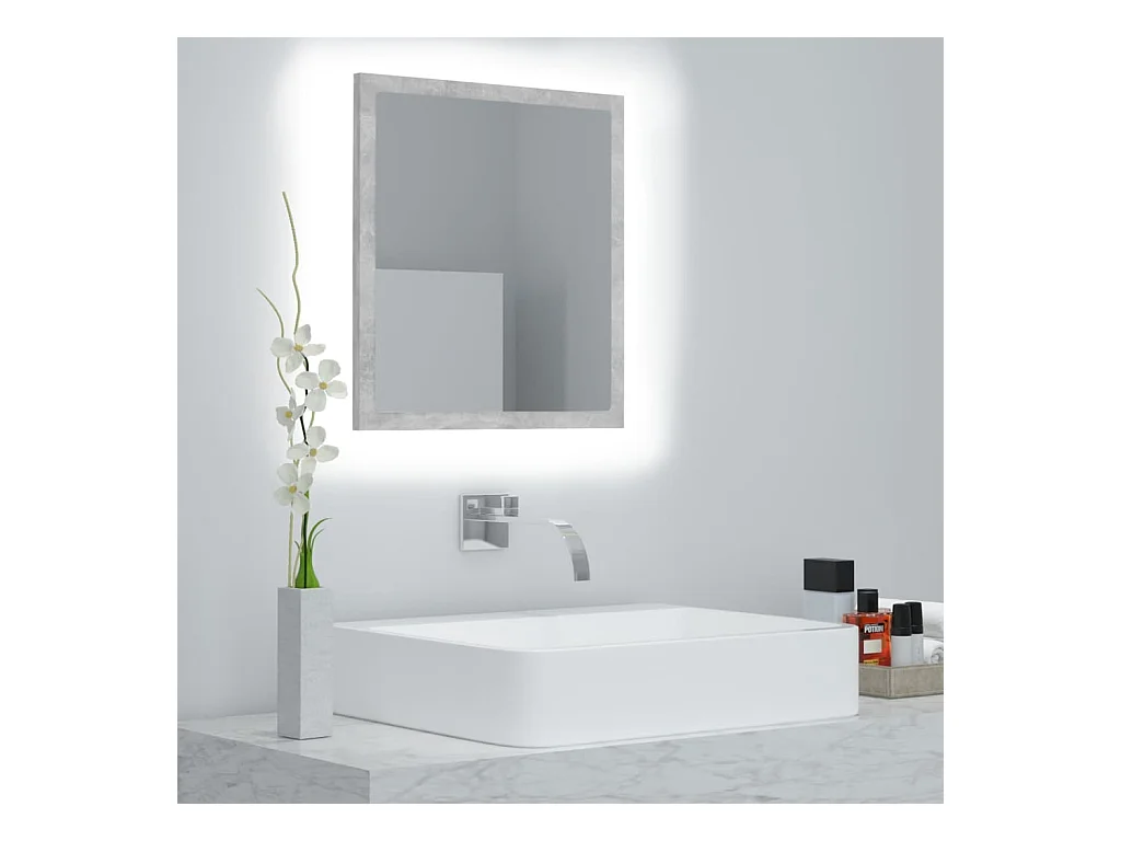 Miroir de salle de bain à miroir LED Gris béton Acrylique WVGQ3786