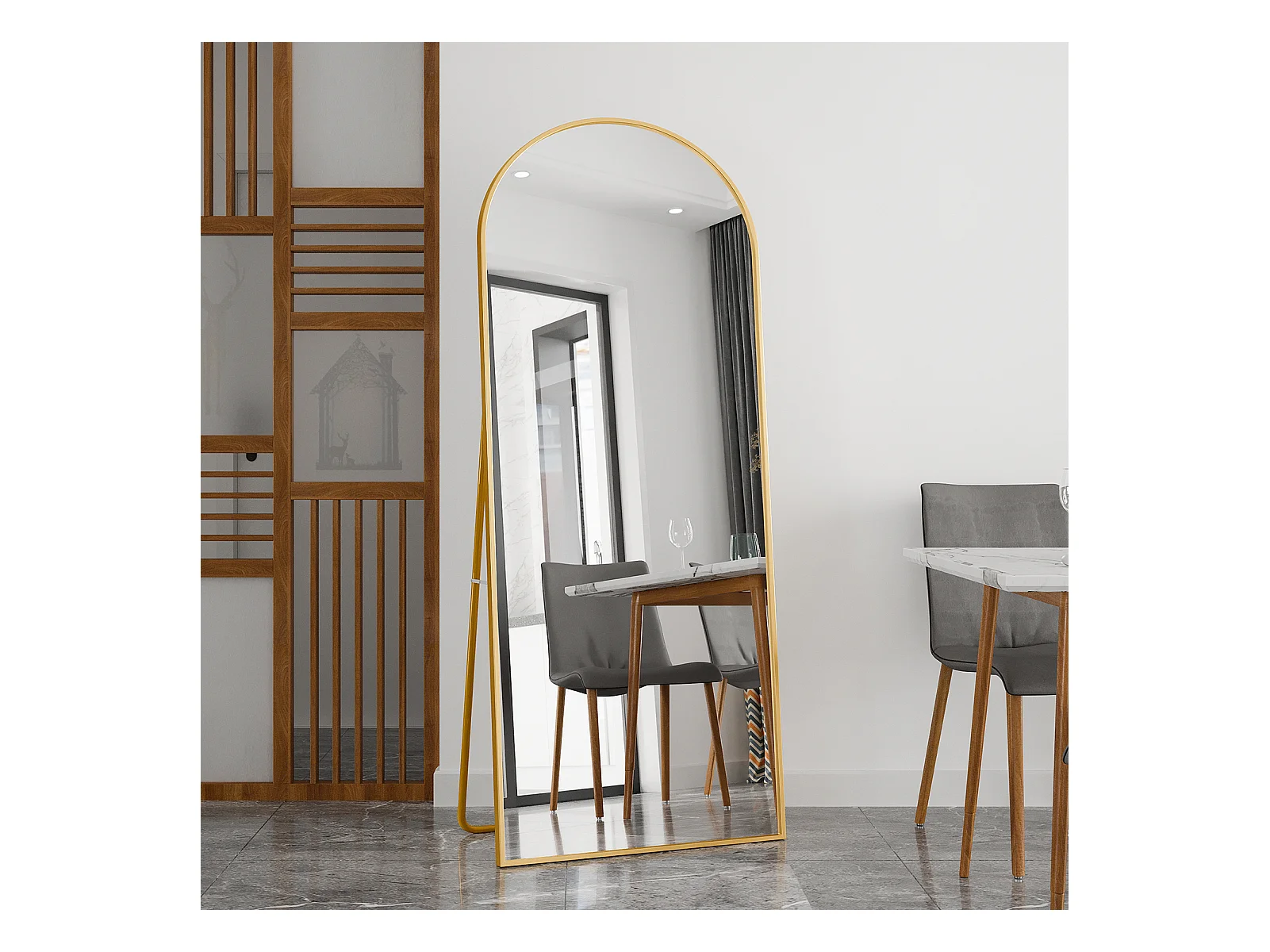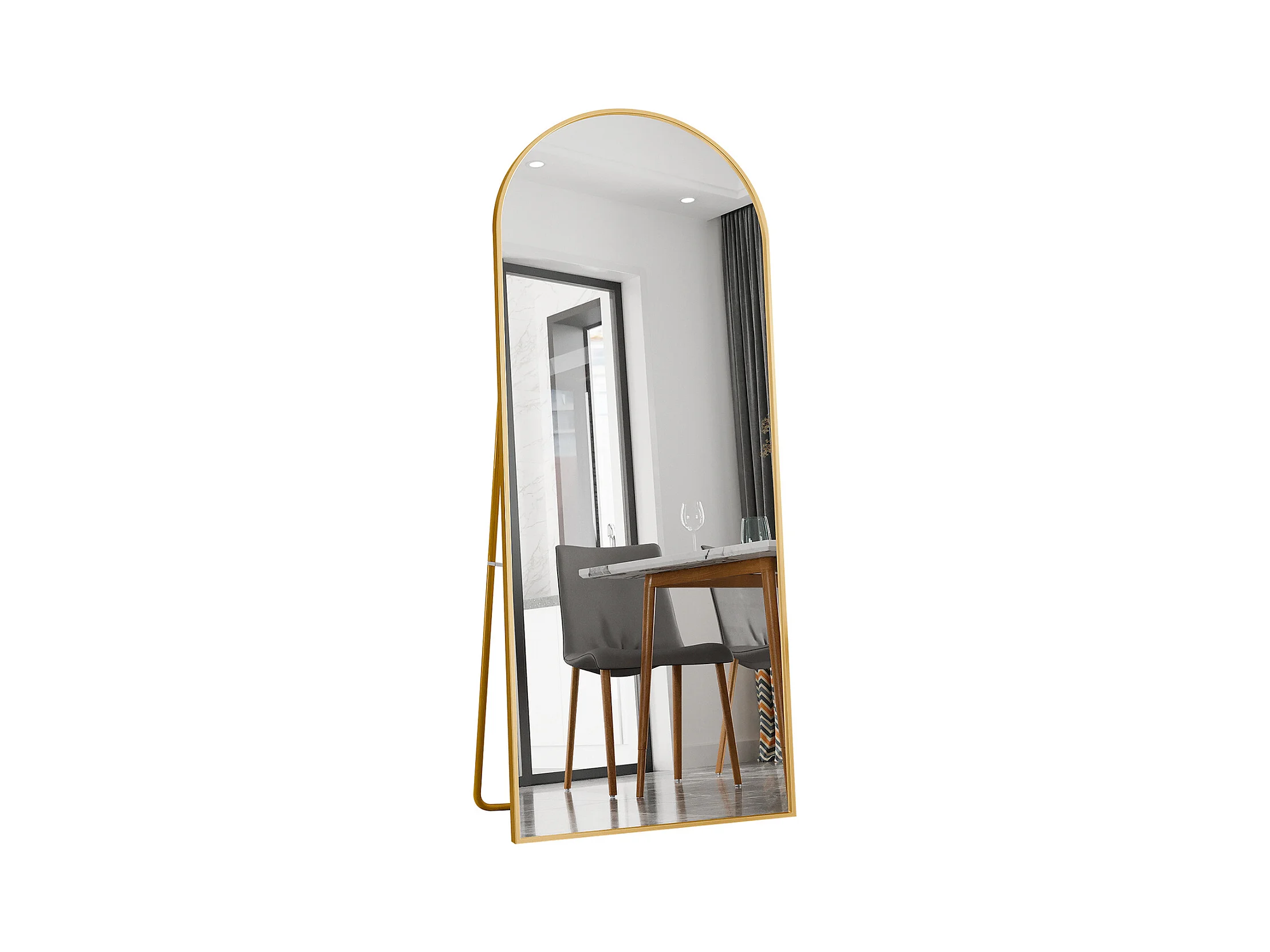 Miroir arqué pleine longueur - 80 x 180 cm Miroir arqué sur pied Grand miroir pleine longueur - Miroir de courtoisie pour salon, Doré