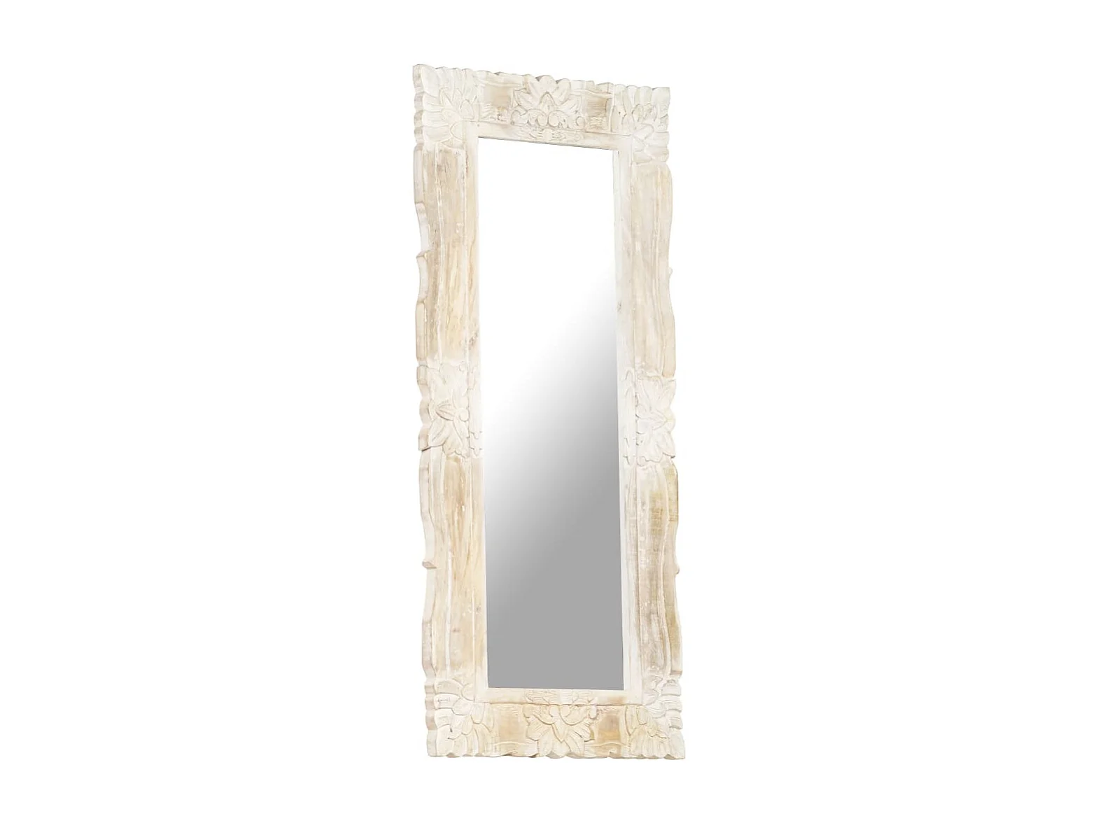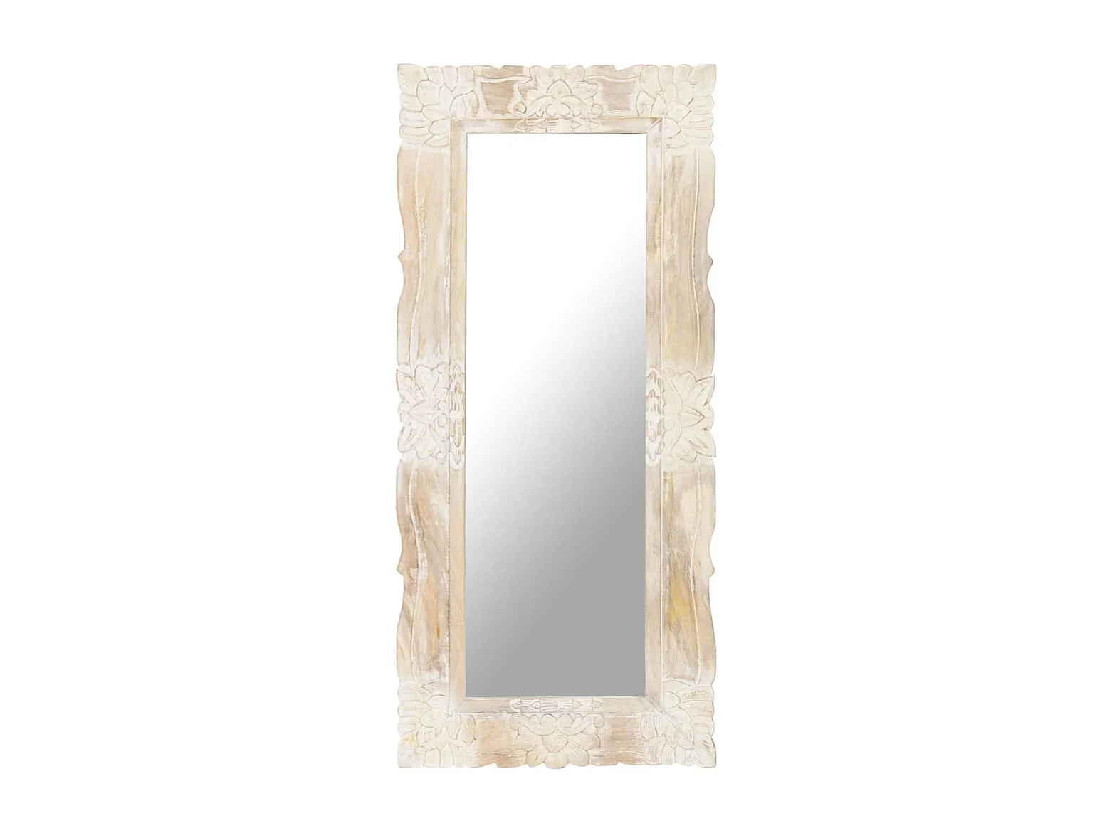 Miroir sculpté à la main Blanc 80x50 cm Bois de manguier massif FR85687