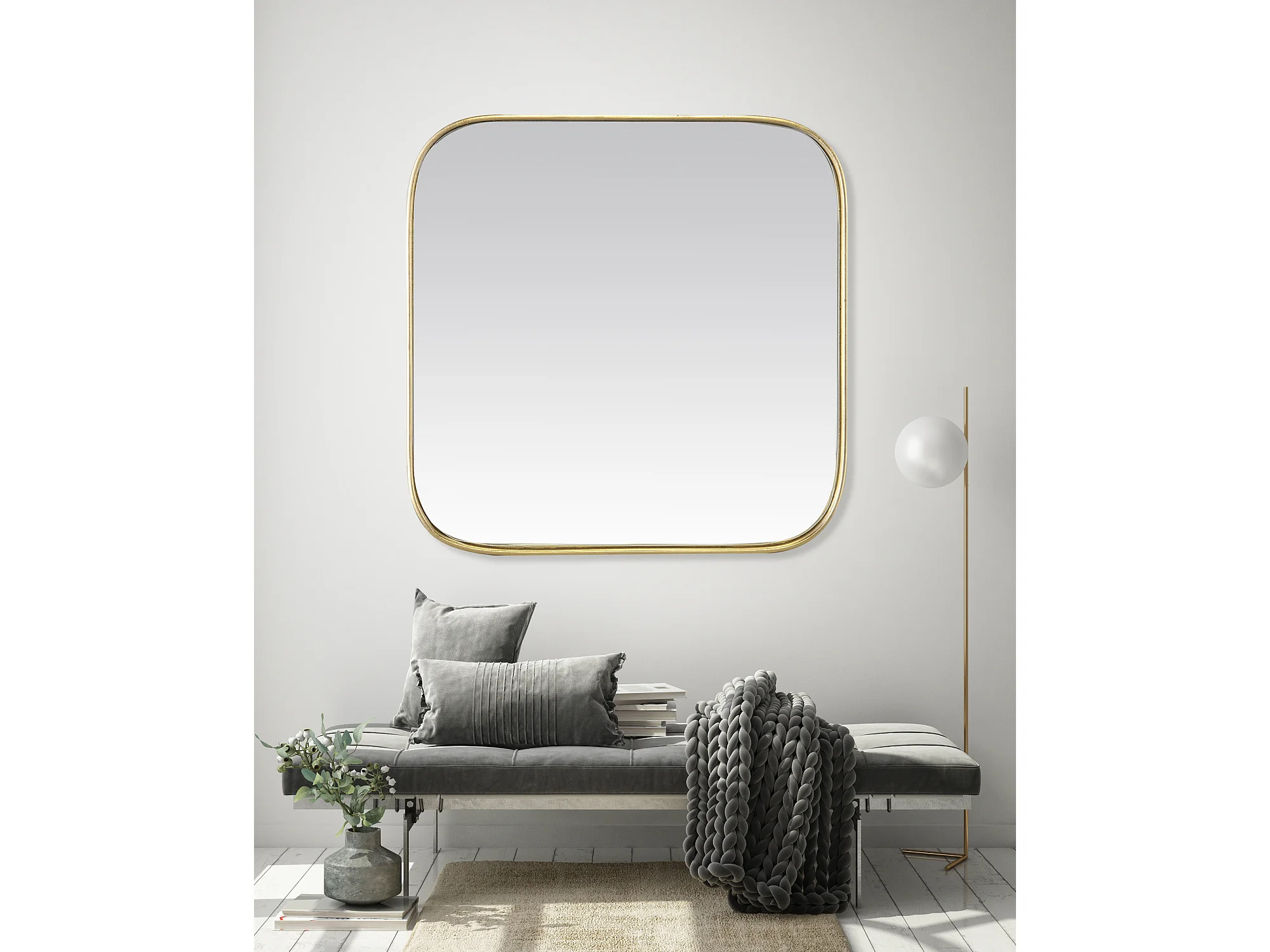 Miroir carré aux bords arrondis en métal doré 120x120cm