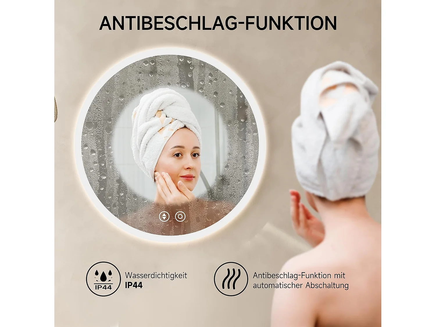 Miroir Salle de Bain LED Rond 50cm avec Anti-buée, 3 Couleurs Dimmable, Mémoire, Verre Trempé HD, Capteur Tactile, IP44