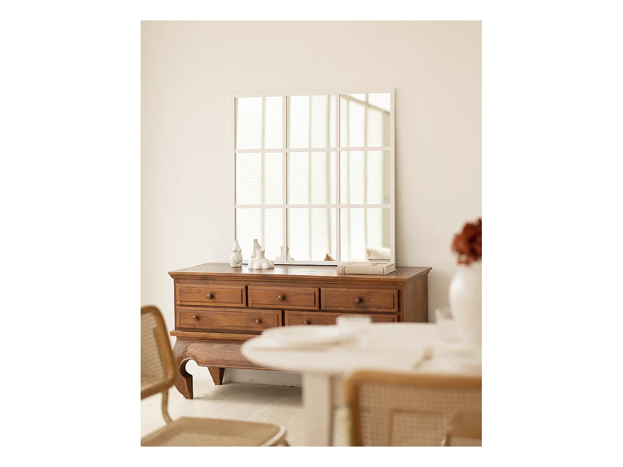 Miroir de fenêtre de couleur blanc 90x90cm