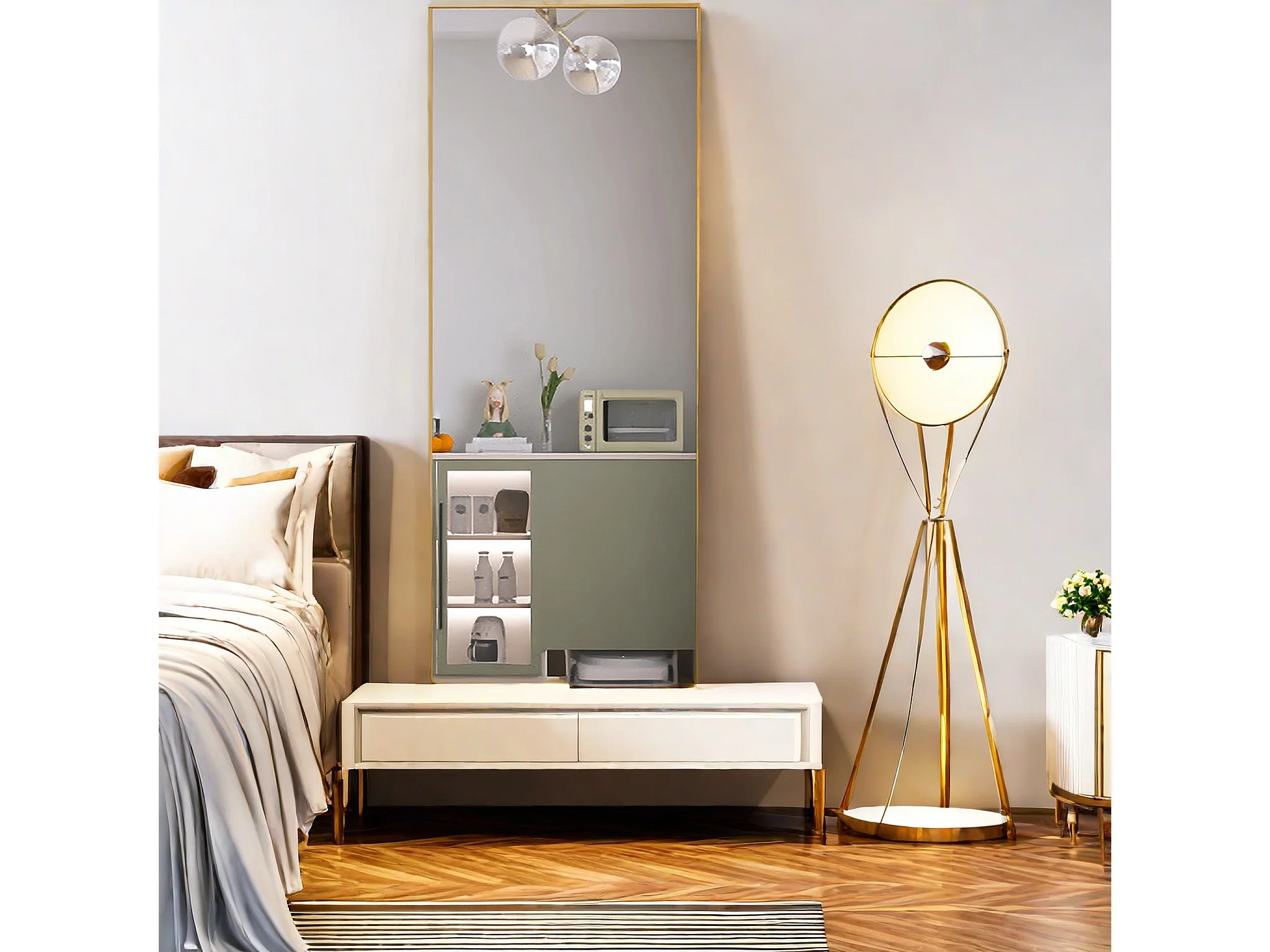 Miroir de maquillage rectangulaire en verre trempé, cadre en aluminium doré, 162 x 53 cm, design moderne élégant pour chambre ou salle de bain